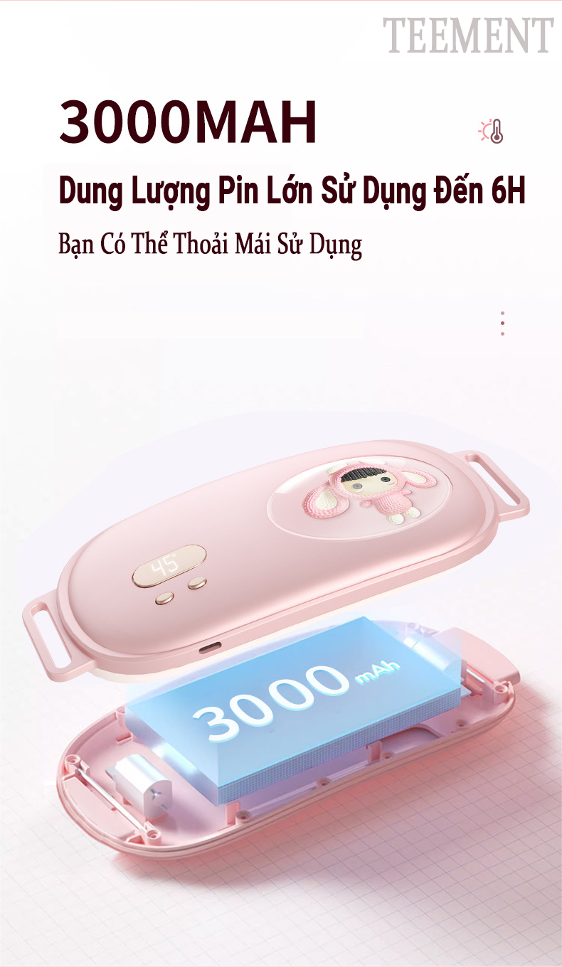 ✨Đai Massage Bụng Kinh Teement, Máy Massage Bụng Kinh, Đai Chườm Nóng Giảm Đau Bụng Kinh, Rung Làm Ấm Giảm Đau 3 Chế Độ - Hàng Chính Hãng