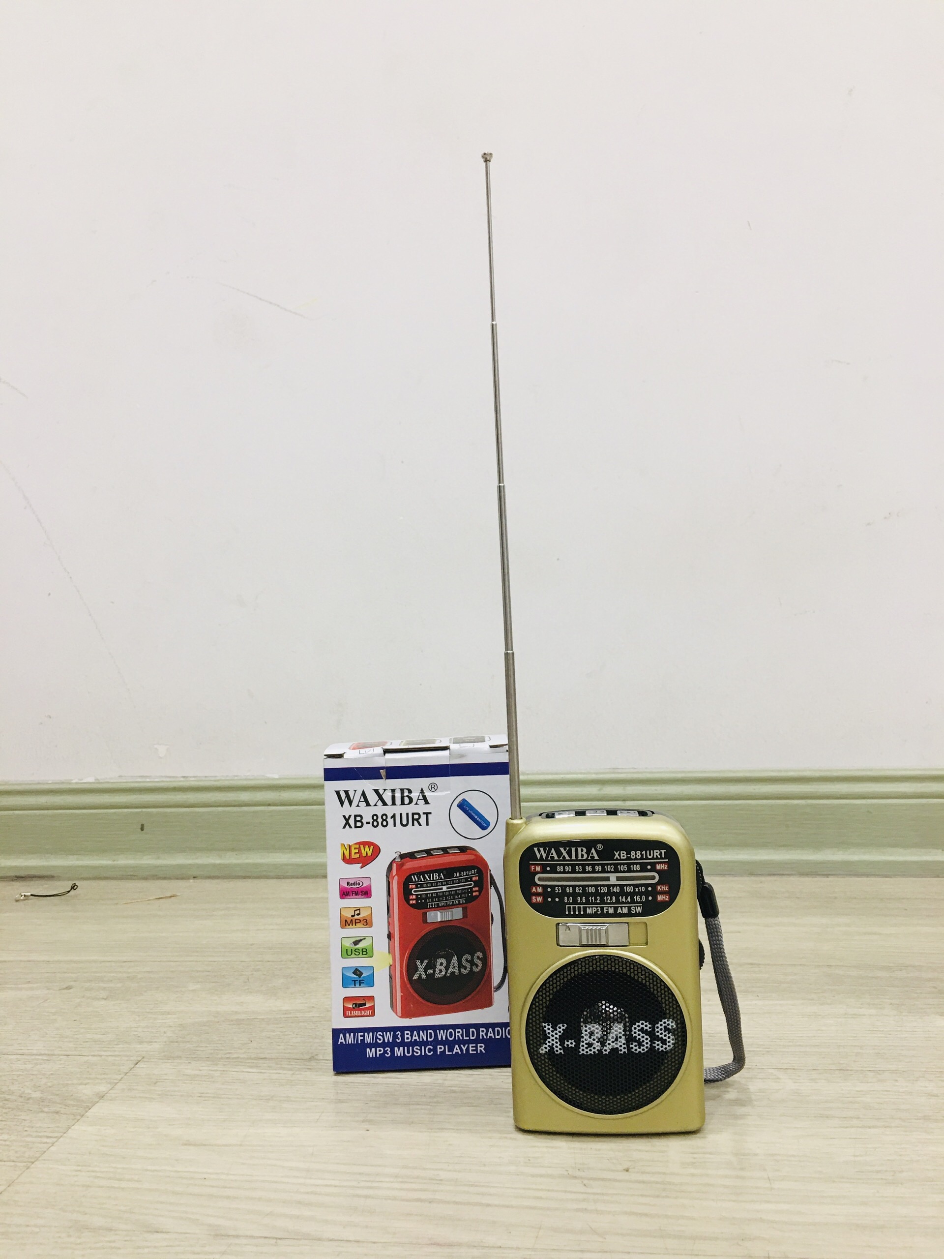 Đài Radio AM/FM/SW nghe nhạc WAXIBA 881URT Loa X-bass Nghe MP3 trên USB/thẻ nhớ,có đèn pin siêu sáng