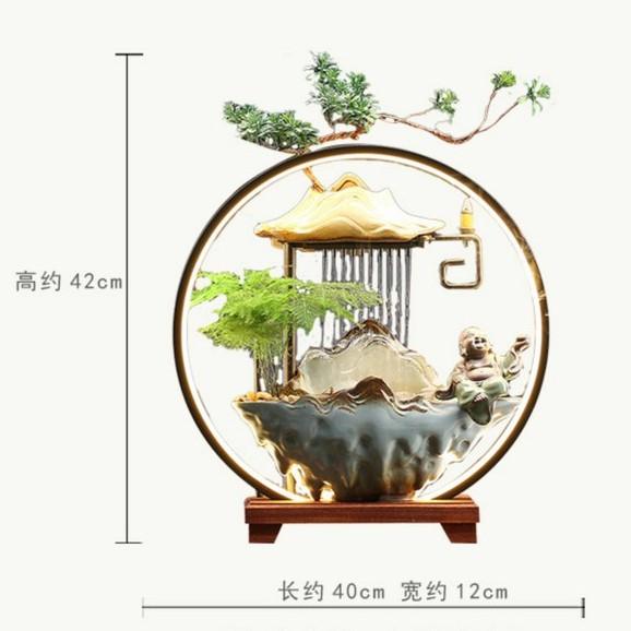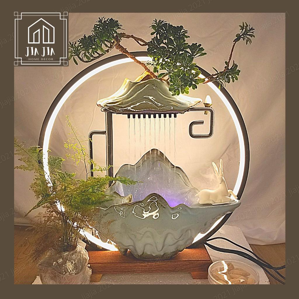 Tiểu cảnh thác nước cao cấp, đài thưởng trầm tài lộc phong thủy - Đài phun nước có đèn LED trang trí