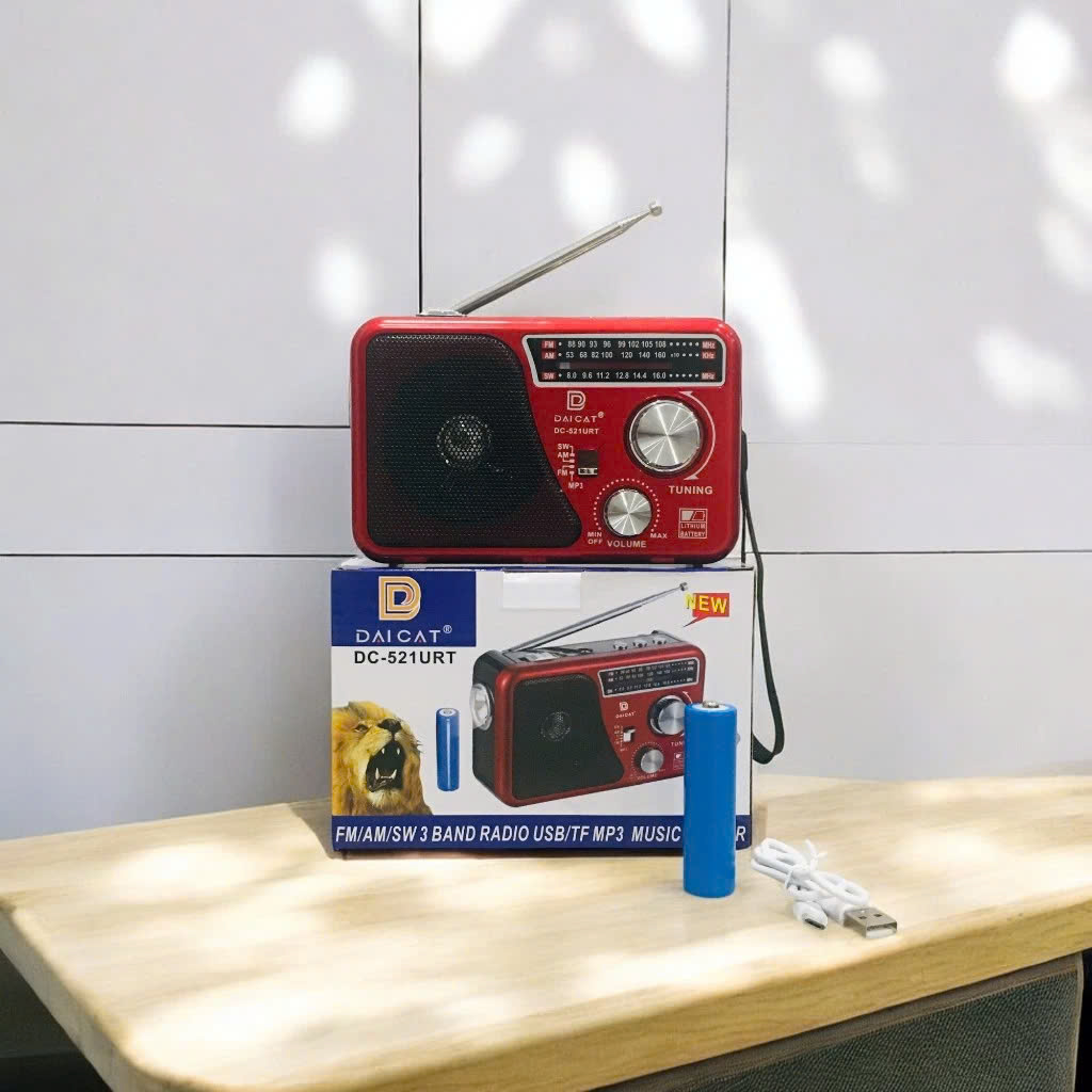 Mua tại TiktokĐài Radio FM DAICAT DC-521URT - Loa nghe nhạc DC-521URT Hỗ Trợ USB, Thẻ nhớ, Chạy Pin và Điện 5V