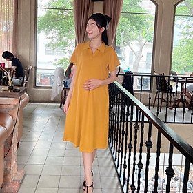 ÔNG TIN SẢN PHẨM: Đầm bầu babydoll đũi gân cổ sơ mi thanh lịch, phối màu bầu diện dễ thương, trẻ trung, năng động. Chất đũi gân Hàn nhẹ mát, thấm hút mồ hôi. Mặc