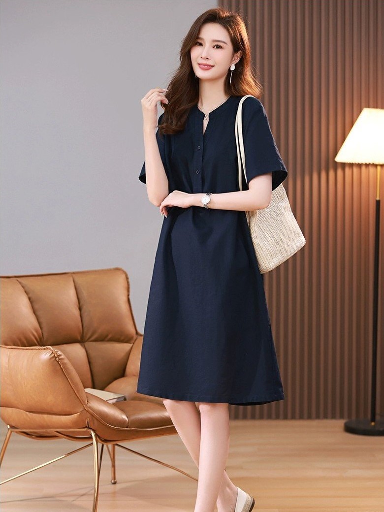 ღ THÔNG TIN SẢN PHẨM: Tên sản phẩm: Đầm sơ mi xanh navy Chất liệu: Chất gân ý Chi tiết sản phẩm: không lót, không túi Thông số size: S, M, L,