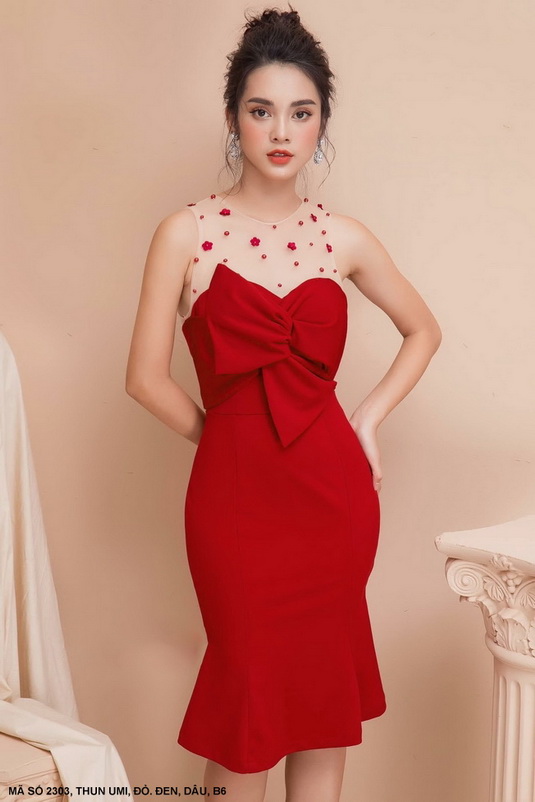 Đầm cúp ngực đính nơ xinh