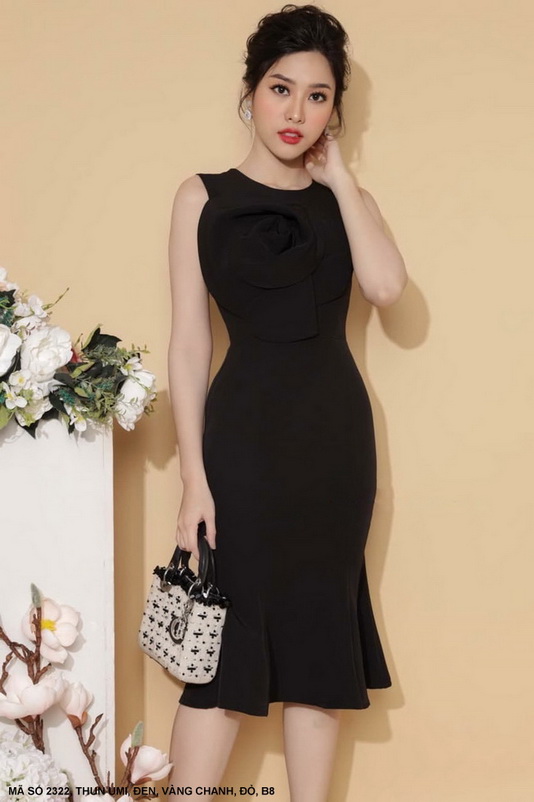Mã số 2322 - Đầm đính hoa hồng lớn trước ngực #damdaopho