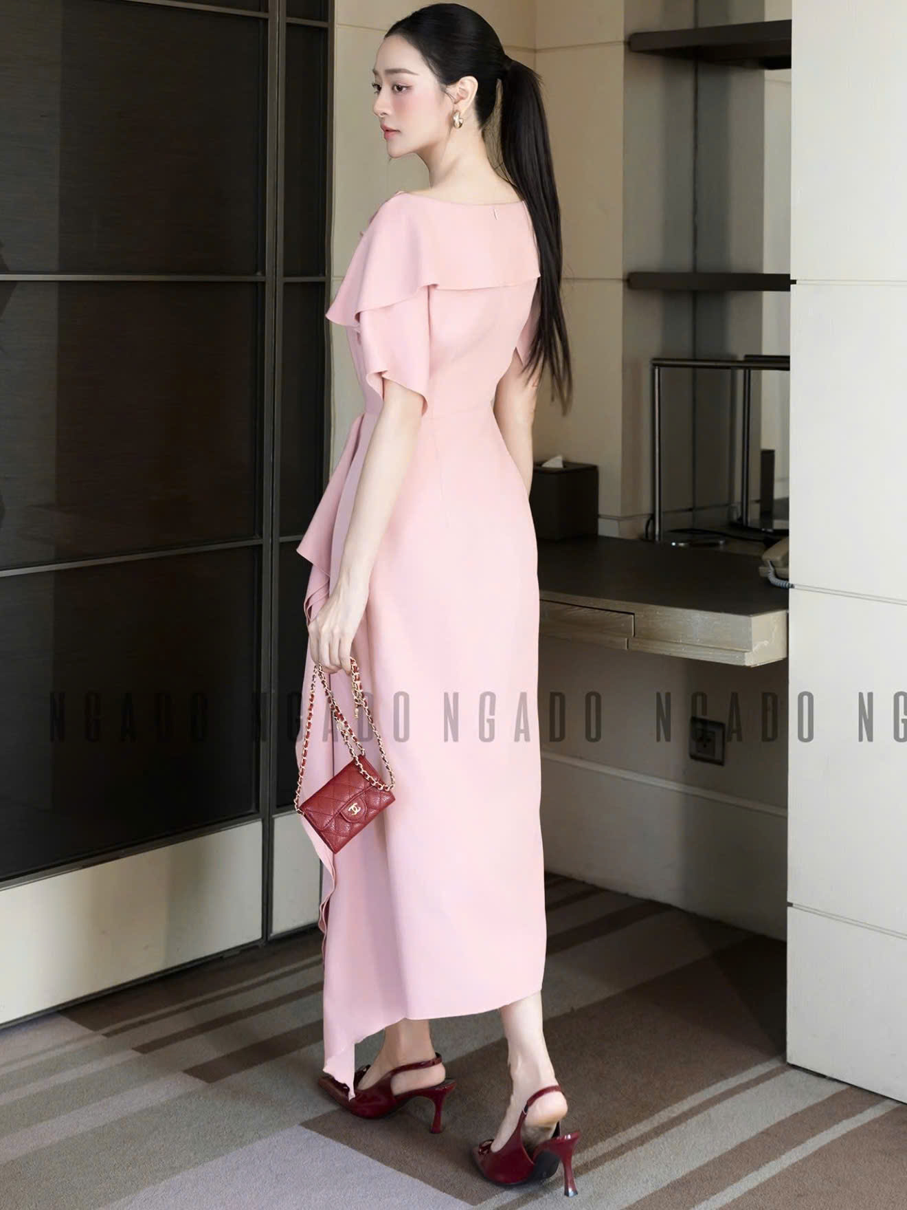 ✨Đầm hồng cổ thuyền vạt xéo NGADO , đầm dài , đầm dự tiệc , sang trọng