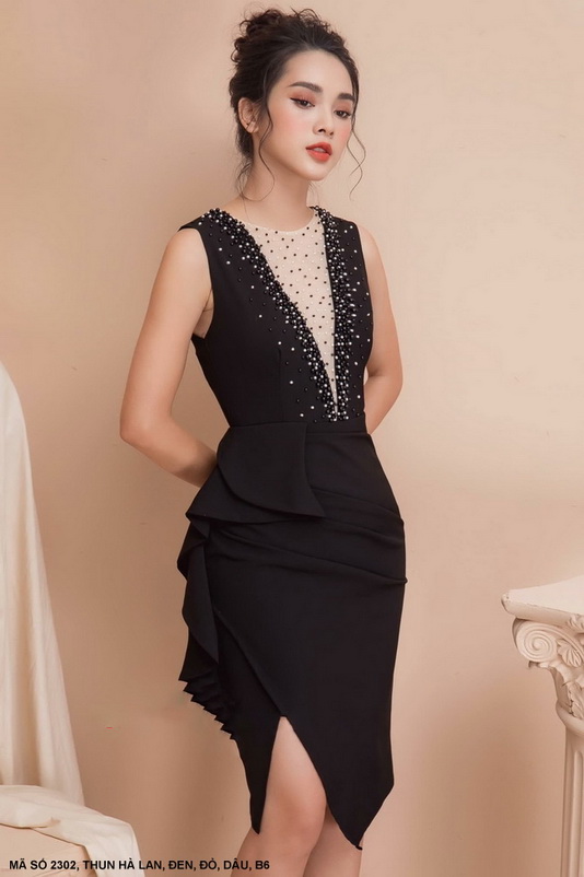 Mã số 2302 - Đầm ôm lai nhọn cổ tim