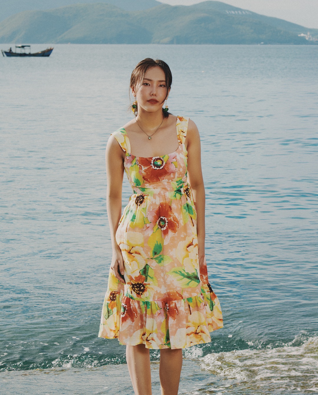 Người mẫu Lâm Hoàng Yến cao 180cm, vòng ngực 84cm vòng eo 65cm vòng mông 94cm - người mẫu đang mặc size M.