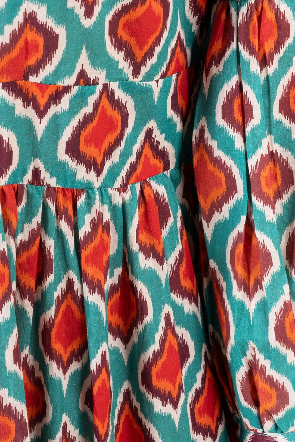 Maxi Boho Dài Tay Kết Cườm Cotton Isla Bonita, chất liệu cotton cao cấp, mềm mại, nổi bật phần ngực trước kết cườm sang trọng. Họa tiết thổ cẩm độc đáo. Phom suông. Dài Đầm