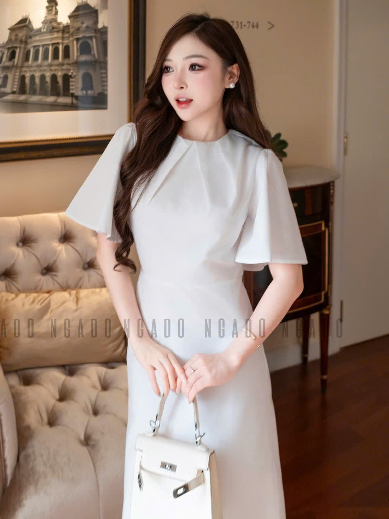 ღ THÔNG TIN SẢN PHẨM: Tên sản phẩm: Đầm trắng cổ xếp Màu sắc: trắng Chất liệu: Gấm trơn dày Chi tiết sản phẩm: không lót, không túi. Thông số