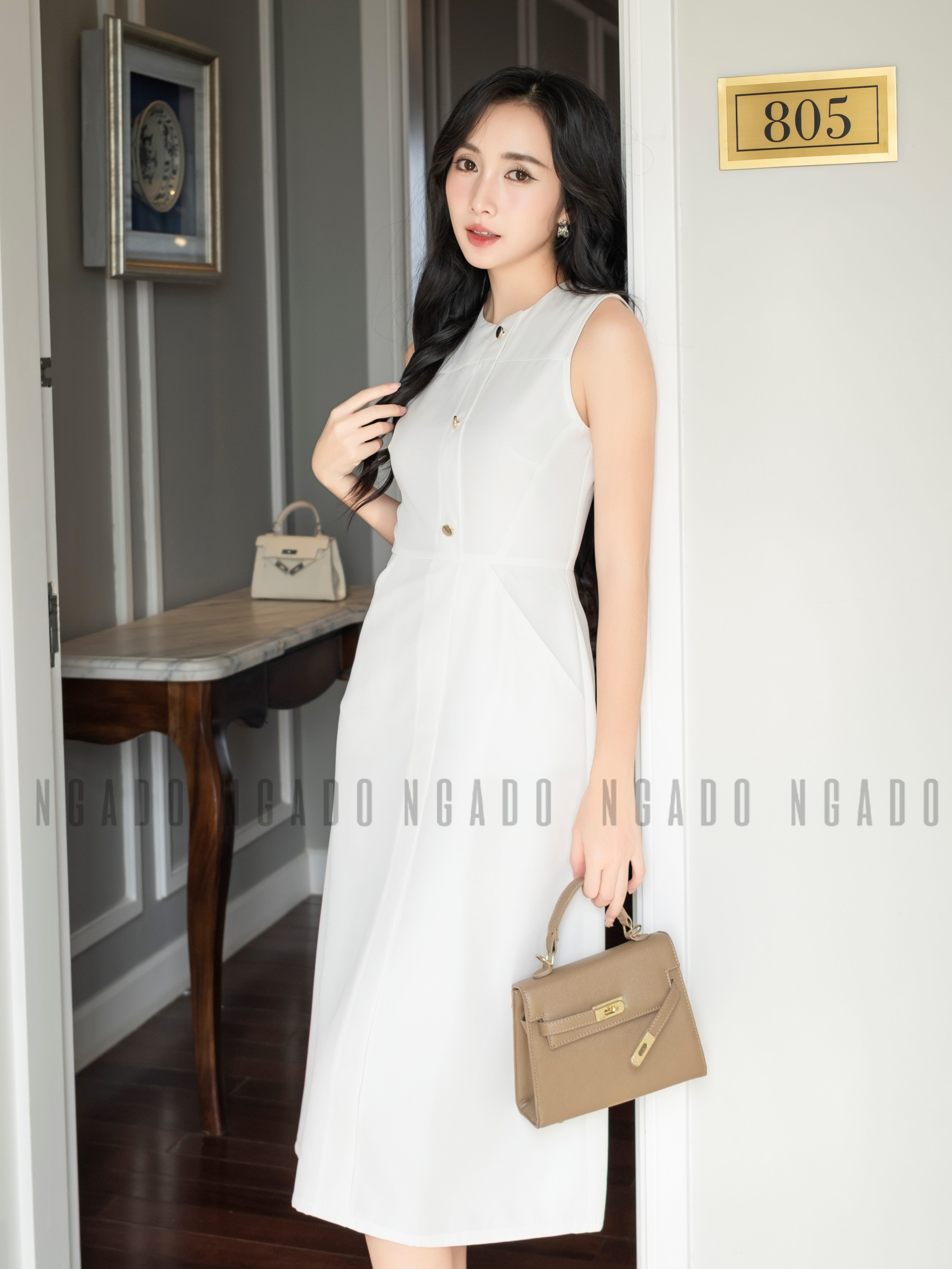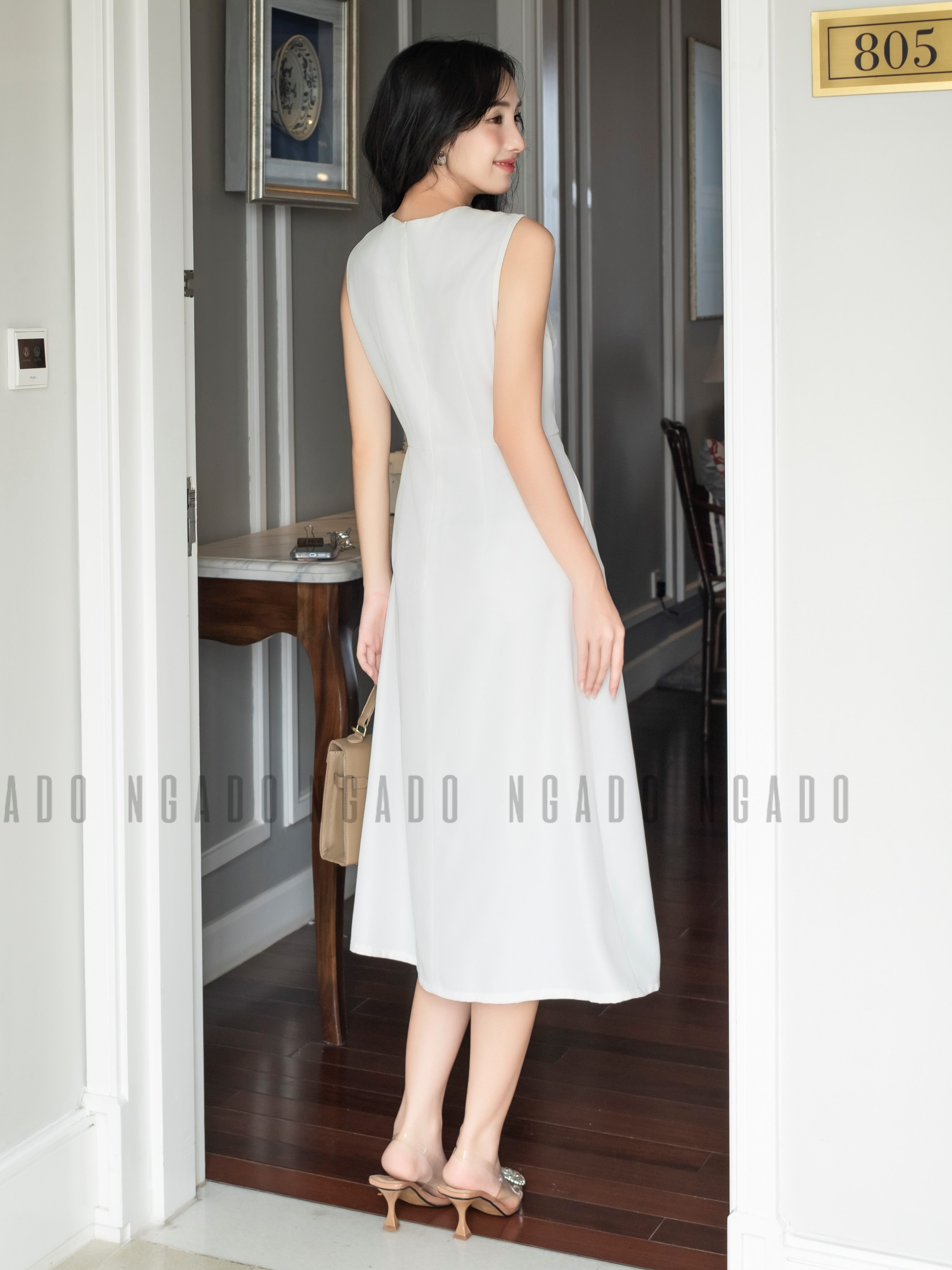 ✨Đầm trắng túi xéo NGADO , đầm nữ , Đầm suông , Đầm dạo phố