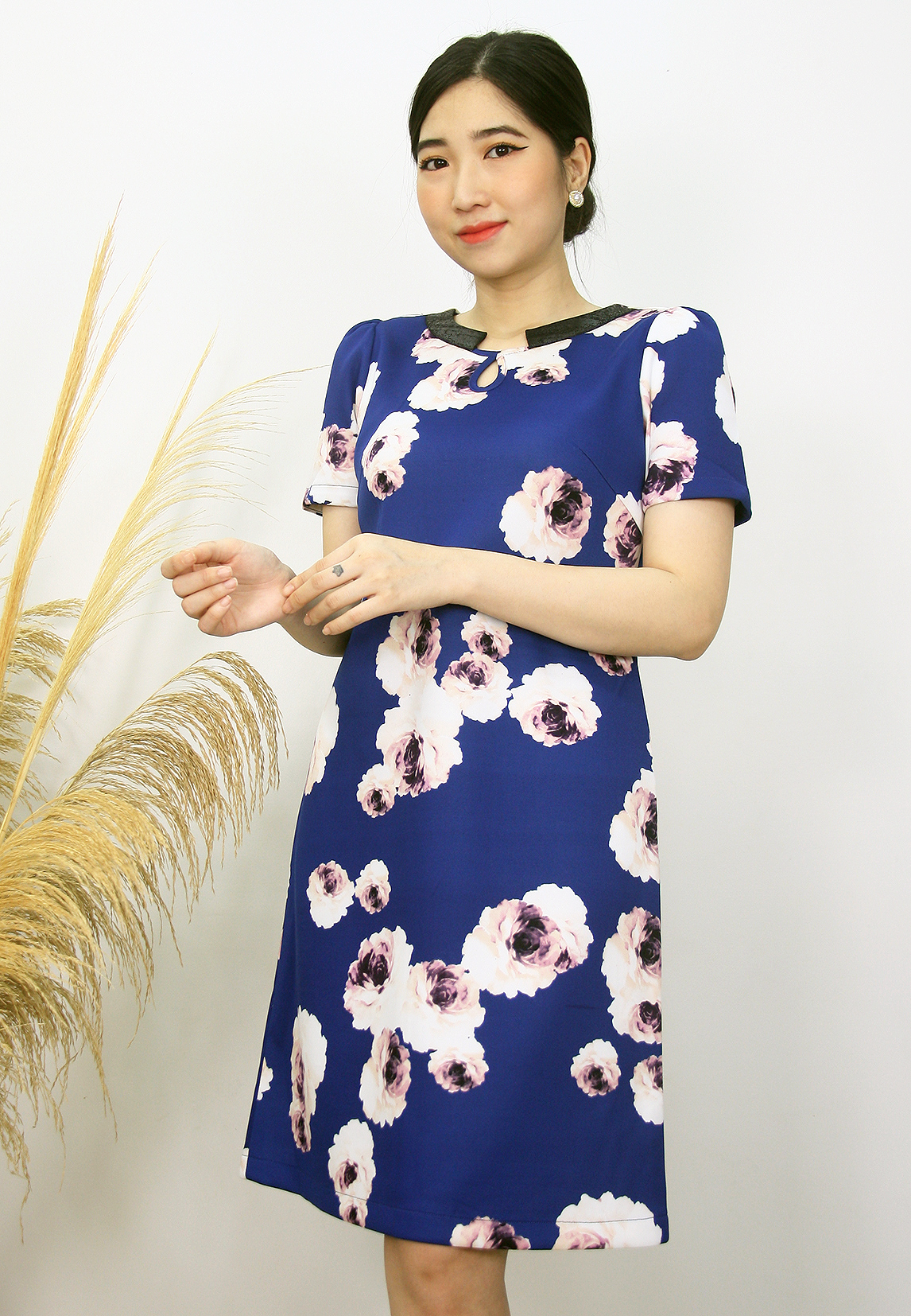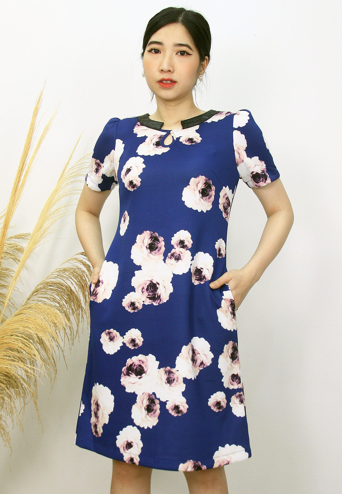 Thiết kế đầm dáng suông A, cổ tròn phối da, khoét giọt nước tạo điểm nhấn cho chiếc đầm.Chất liệu thun hàn co giãn dễ chịu. Phía sau có xẻ tà để dễ dàng di chuyển và hoạt động.