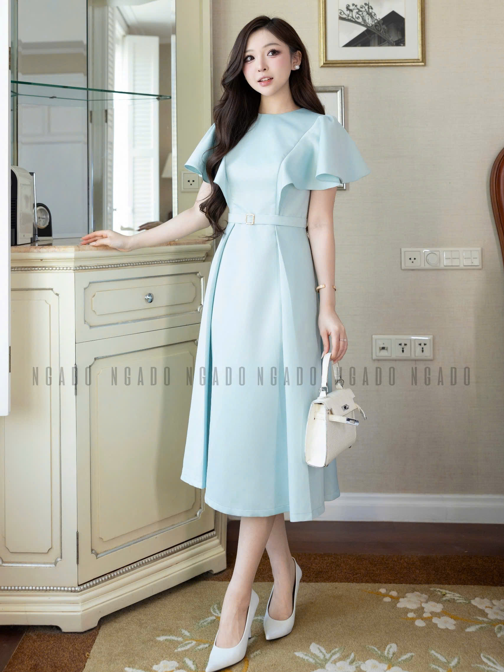 ✨Đầm xanh mint cổ tròn NGADO , đầm dài , đầm dự tiệc , công sở