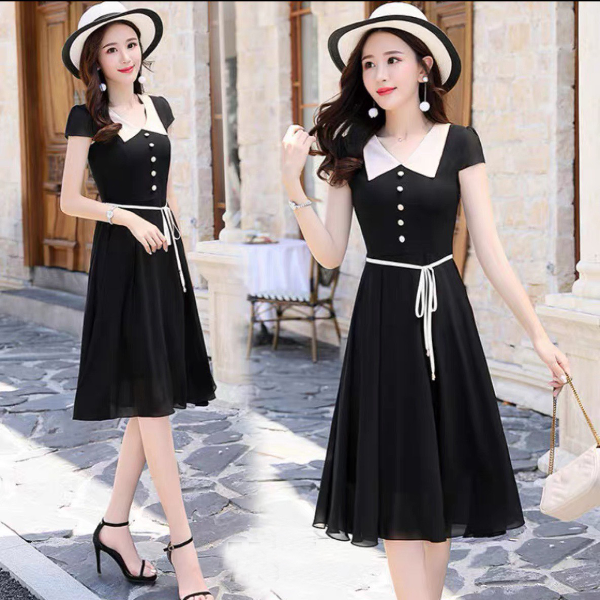 Mua tại TiktokChất liệu: chifon Màu: đen, xanh, hồng Kiểu dáng: đầm xòe, cổ trắng, đính nút, eo dây, đơn giản mà nhẹ nhàng thoải mái BẢNG SIZE THAM KHẢO: ( tùy thuộc vào chiều cao/ cơ địa mà khách hãy chọn size phù hợp nhé!) size M : 45-50kg size L : 51-58kg size XL : 59-63kg size XXl : 64-71kg