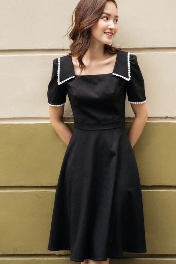 ✨Đầm xòe cổ vuông đính hạt chất thun umi