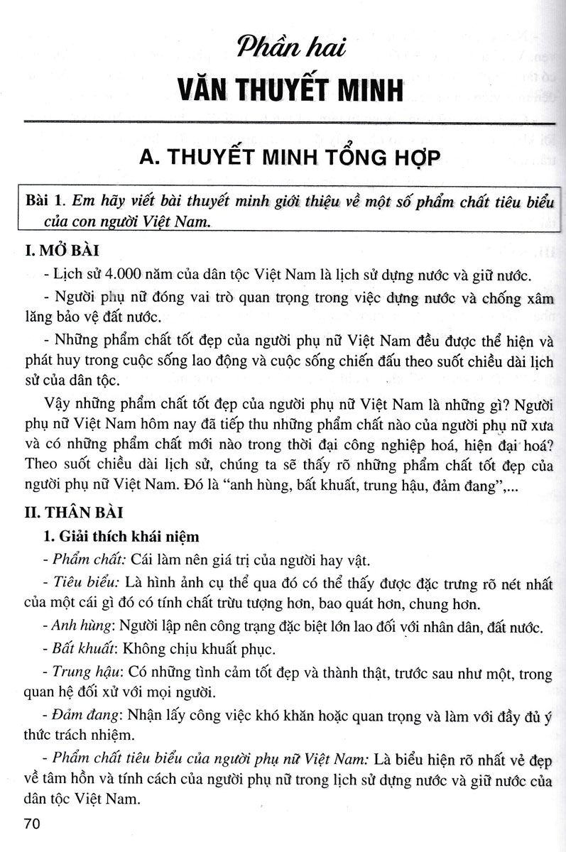 Thuyết minh tổng hợp: Trong mỗi dàn bài, tác giả đã chú ý lồng ghép một hay nhiều yếu tố như tự sự, miêu tả, biểu cảm, nghị luận để bài viết sinh động, hấp dẫn và tăng sức thuyết phục.