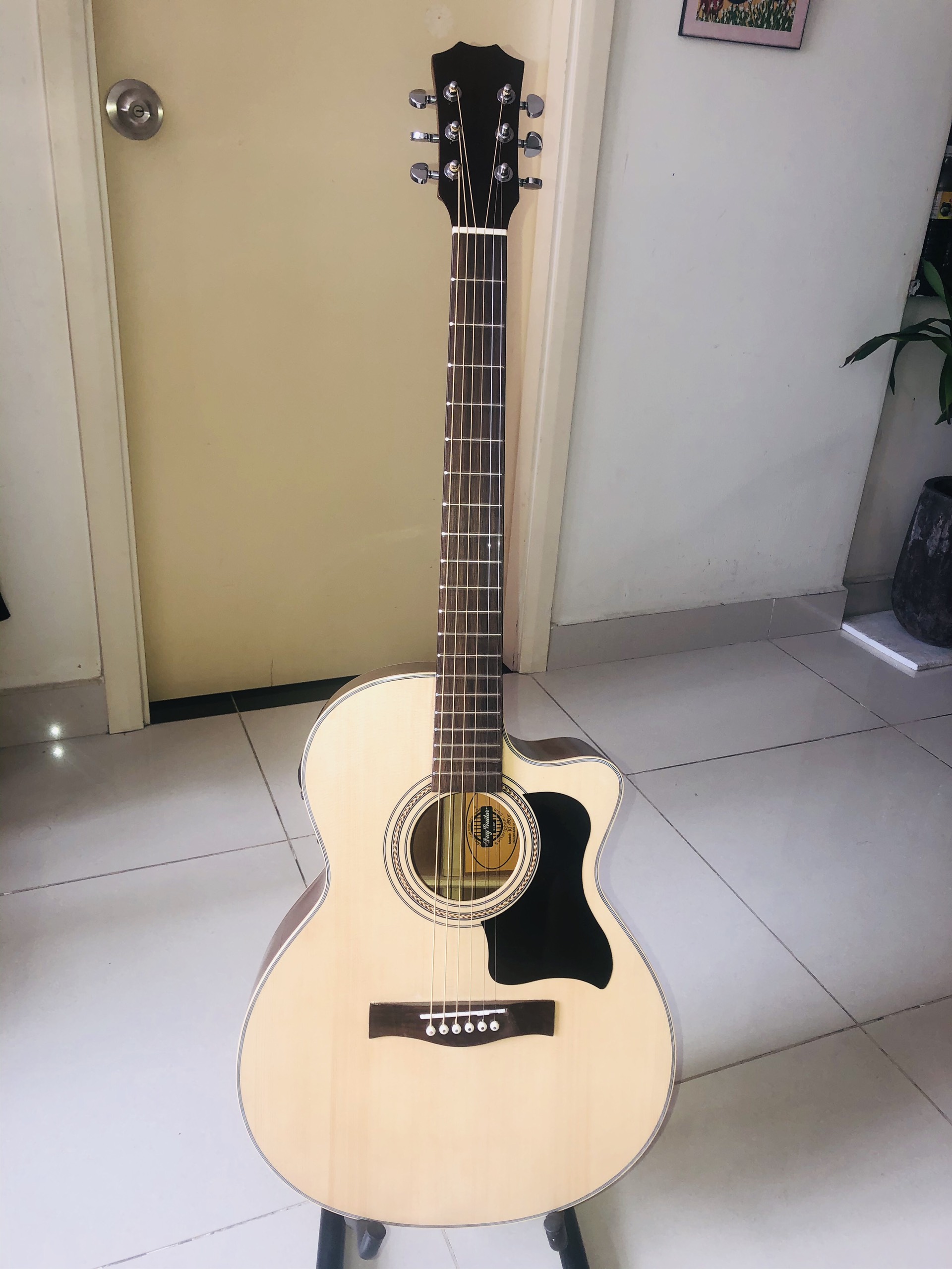 Đàn guitar acoustic SAG03CN có tiếng hay, âm vang, chuẩn xác SAG03CN có dáng khuyết, kiểu dáng hiện đại Đây là cây đàn phù hợp với người bắt đầu tập chơi, đàn có action thấp