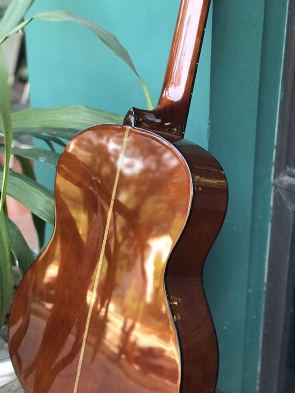 - Lưng và hông đàn : Gỗ Mahogany ( Gụ )