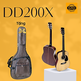Mua tại TiktokThông tin chi tiết cây đàn acoustic DD200X có EQ 7545R Đàn Guitar acoustic có EQ Mã: DD200X Mặt: gỗ thông Eo + lưng: gỗ hồng đào Cần: gỗ thao lao, có ty chống cong cần Mặt phím: gõ mật Ngựa: gõ mật Dây: Alice AW436 Khóa: Taiwan EQ: 7545R