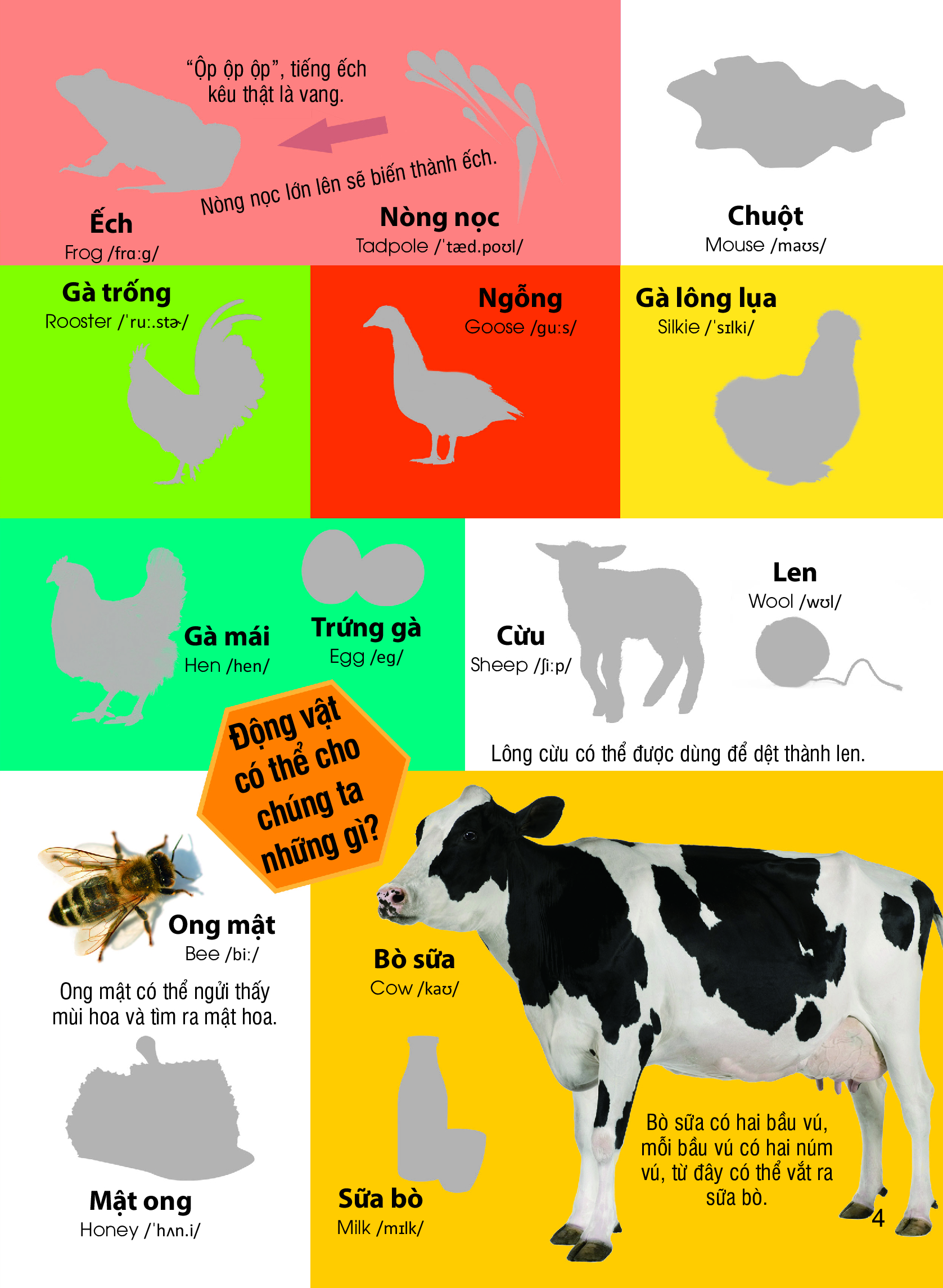 ✨Dán Hình Nhận Biết Động Vật - Những Loài Vật Dễ Thương (Song Ngữ Việt-Anh)