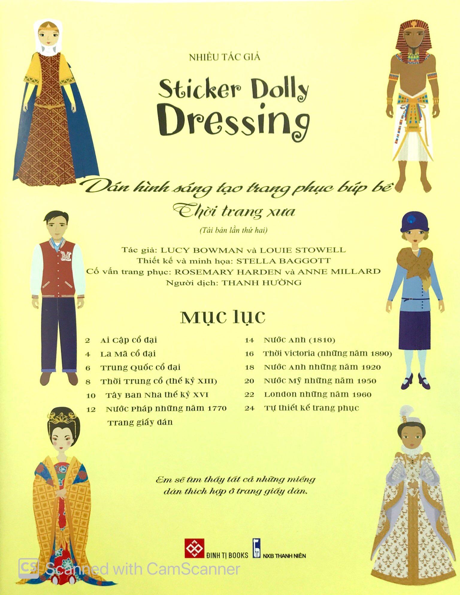 Hãy mở sách và bước vào thế giới của những bộ trang phục đa dạng, nhiều màu sắc và liên tục thay đổi qua các thời kì, từ chiếc áo Toga thời La Mã cổ đại cho tới kiểu váy ngắn thời thượng những năm 1960 ở London. Mau tô điểm cho búp bê bằng những trang phục thật đẹp thôi nào.