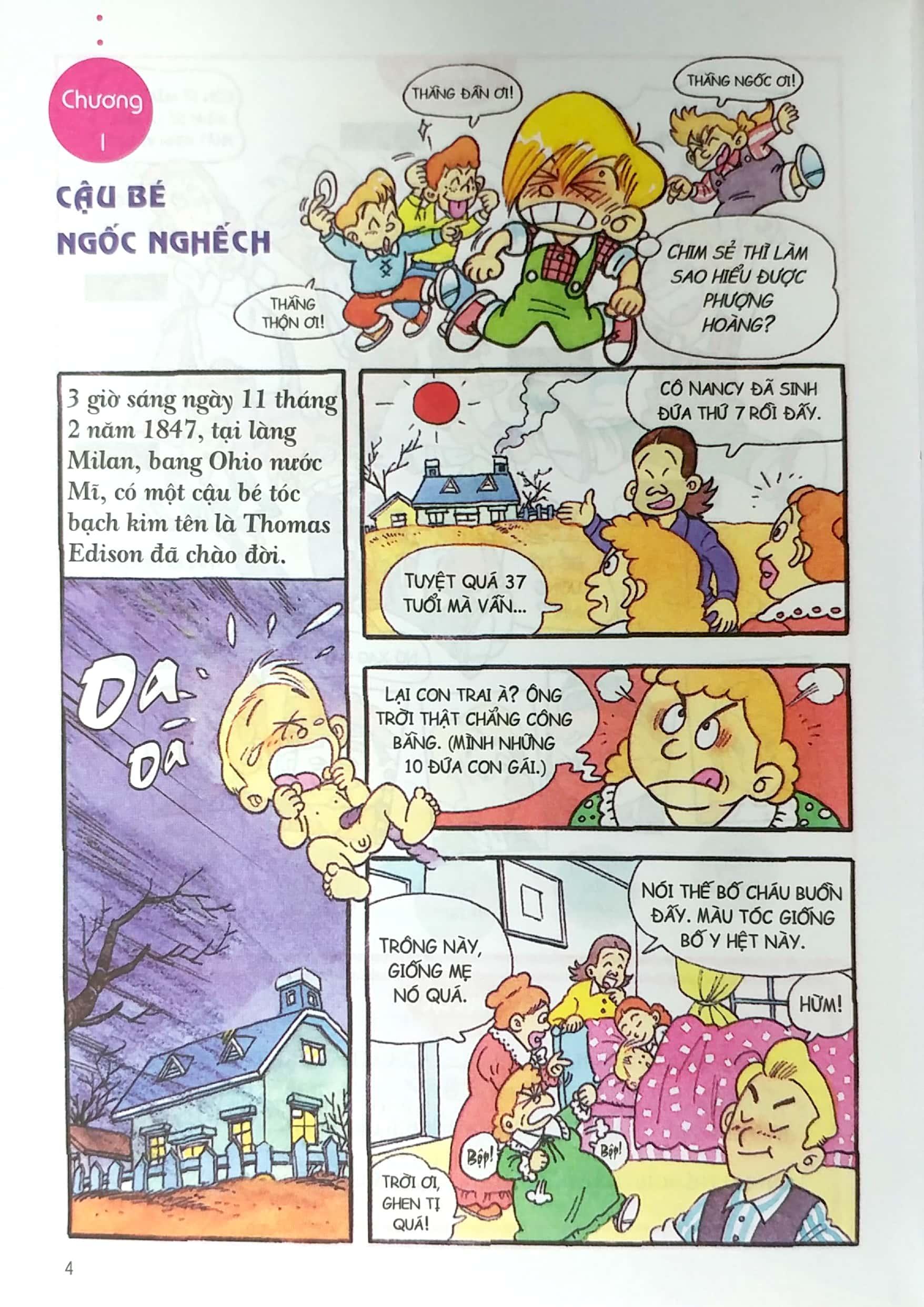 Thuở nhỏ, nhà phát minh Edison là một cậu bé hay tò mò. Để trứng nở ra gà con, cậu đã ấp trứng như gà mái. Cậu cho bạn uống axít đun sôi với hi vọng bạn bay được lên trời, suýt nữa thì nguy to. Cậu luôn làm khó người lớn bởi những câu hỏi hóc búa. Thói quen của cậu là luôn tìm hiểu nguyên do và quy luật của mọi sự vật, hiện tượng. Mặc dù không thích ứng được với việc học ở trường nhưng bằng sự nhẫn nại, kiên trì Edison vẫn quyết theo đuổi bằng được hoài bão của mình. Cậu đi bán rau quả, bán báo trên tàu để lấy tiền mua sách, dụng cụ thí nghiệm.