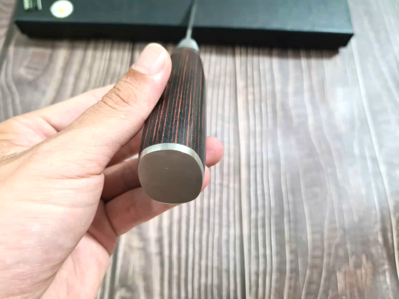 • Chất liệu: Thép Nhật 420J2, độ cứng 53HRC – siêu bền, chống gỉ • Lưỡi dao: Dày 2.5mm, sắc bén, hoàn thiện bằng đá mài nước • Tay cầm: Gỗ Pakka sang trọng, chống