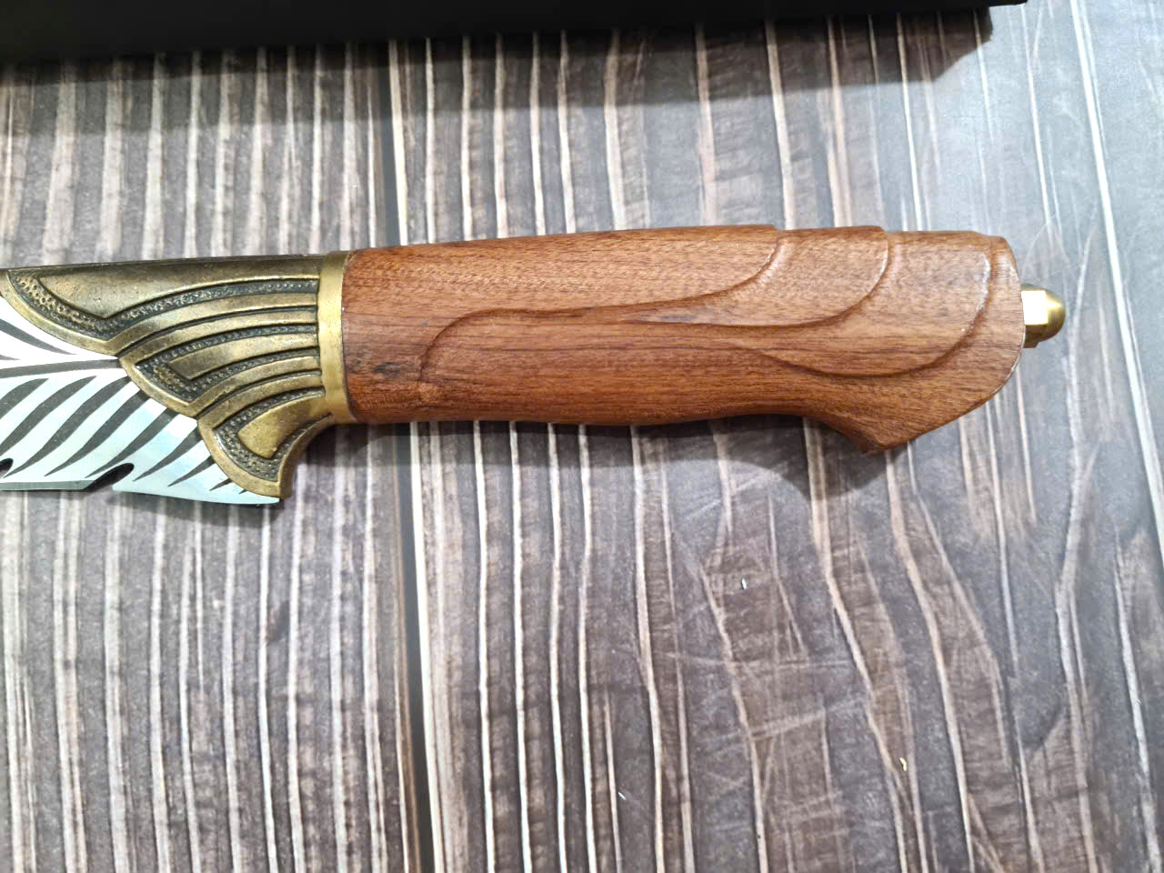 THÔNG TIN SẢN PHẨM TỔNG DÀI : 33cm, LƯỠI: 16.5cm,CÁN: 12cm ,RỘNG : 3,6cm, dày: 2.5mm, CHẤT liệu lưỡi: 7Cr17MOV (thép 7 crom 17 molypden vanadi) Chất liệu CÁN: gỗ cẩm lai, Các phụ kiện ( khâu ) : đồng thau NẶNG : 3 lạng