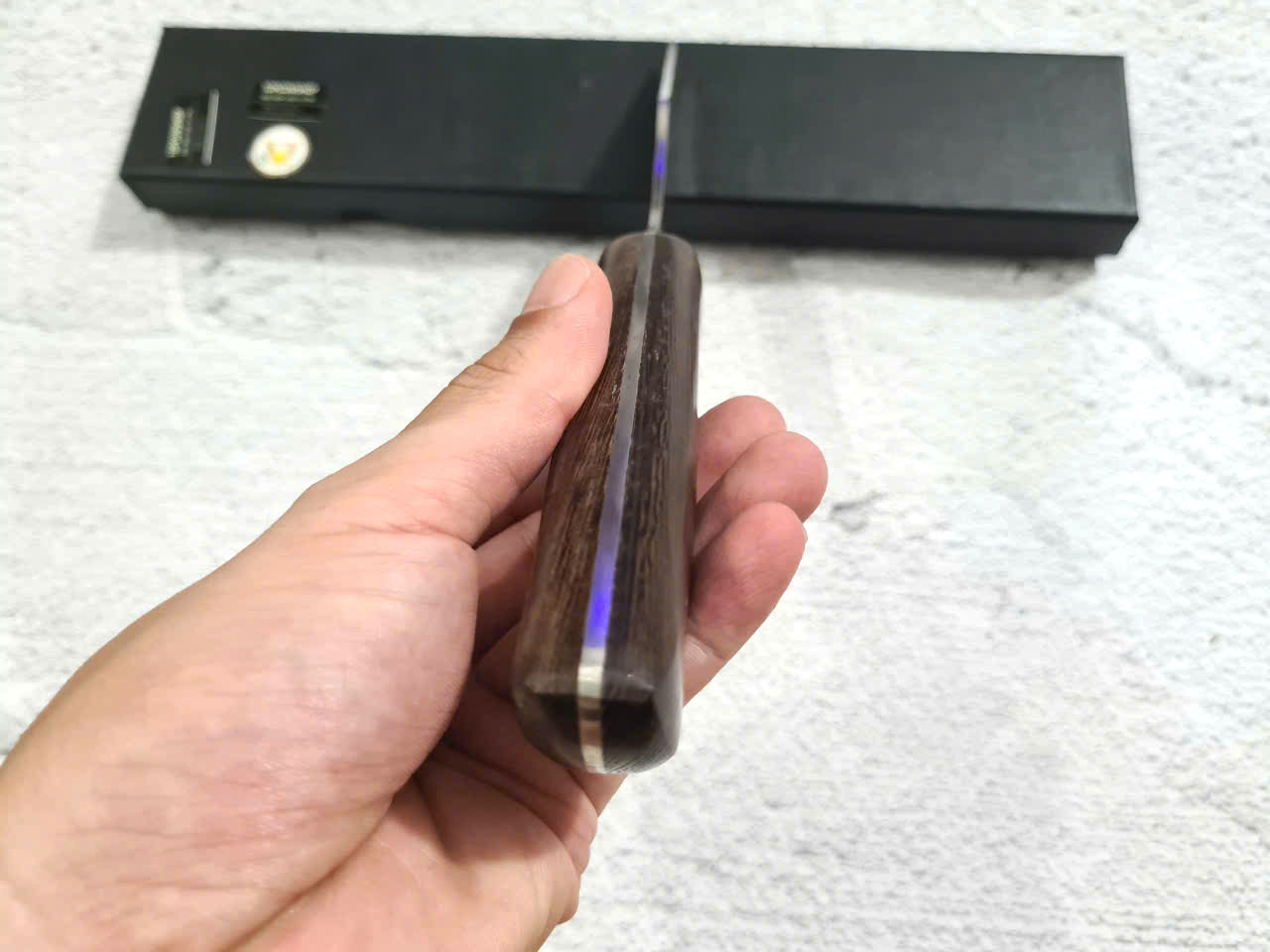 DAO BẾP SASHIMI MẶT HOA VĂN MÃ N4 THÔNG TIN SẢN PHẨM TỔNG DÀI : 45cm, LƯỠI: 30cm,RỘNG : 4cm, dày: 2.5mm, CHẤT liệu lưỡi: thép IFA cao cấp Chất liệu CÁN: gỗ Cẩm chỉ,