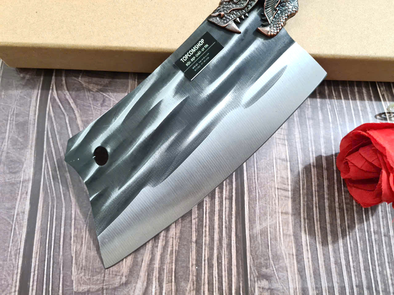 THÔNG TIN SẢN PHẨM ều dài TỔNG: 31cm Chiều dài lưỡi: 18.5cm Chiều rộng lưỡi: 8cm, Độ dày lưỡi: 2.7mm Trọng lượng: 0,35kg chất liệu lưỡi : 4Cr13MOV (thép 4 crom 13 molypden vanadi)