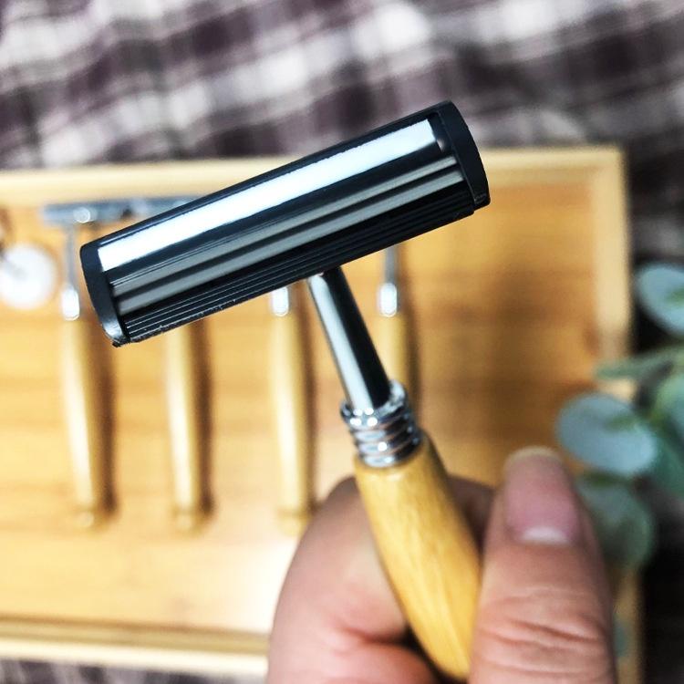 Chất liệu dao cạo râu an toàn: tay cầm là tre + hợp kim nhôm, lưỡi dao là hợp kim kẽm