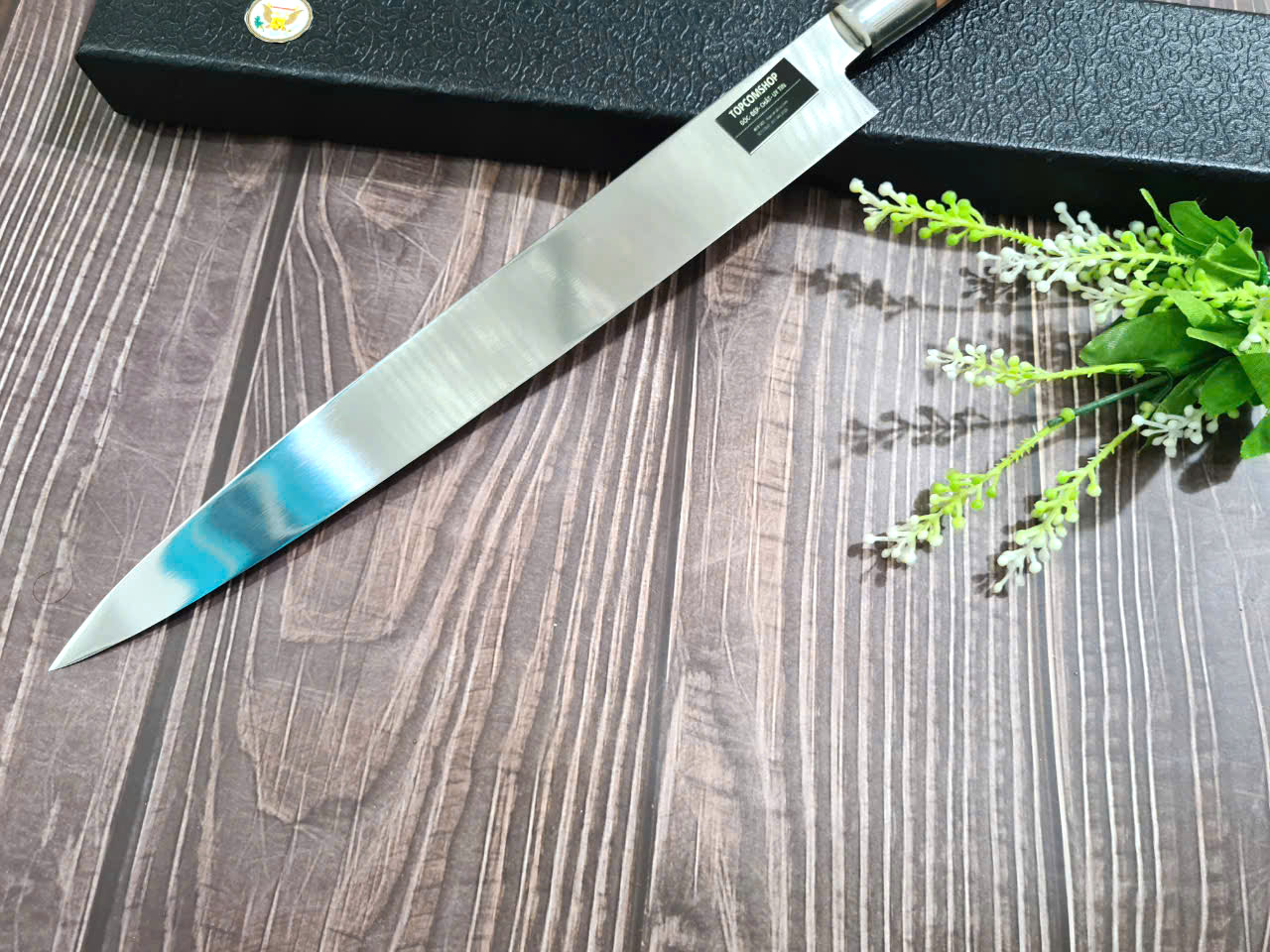 DAO BẾP SASHIMI là chiếc dao Nhật cao cấp chuyên dùng để cắt thái thịt cá và các loại thực phẩm nhỏ. Lưỡi dao thuôn dài, được làm từ chất liệu cao cấp giúp dao luôn bền đẹp như lúc đầu.