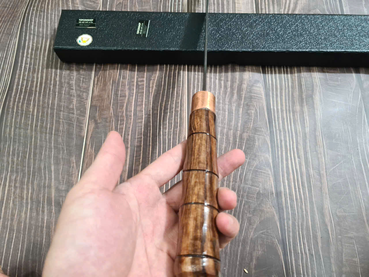 **** DAO BẾP SASHIMI MUĨ VÁT MÃ N53 : TỔNG DÀI : 45cm, LƯỠI: 30cm,RỘNG : 4cm, dày: 2.5mm, CHẤT liệu lưỡi: thép IFA cao cấp Chất liệu CÁN: gỗ cẩm chỉ, Các phụ kiện ( khâu ) : đồng thau NẶNG : 3 lạng