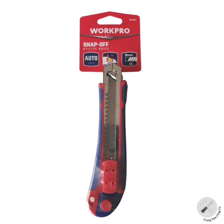 Dao rọc giấy tự động khóa lưỡi, chiều rộng lưỡi dao 18mm Workpro WP212011 được cấu tạo từ nguyên liệu chắc chắn với công nghệ tiên tiến cho độ bền vượt trội so với thời