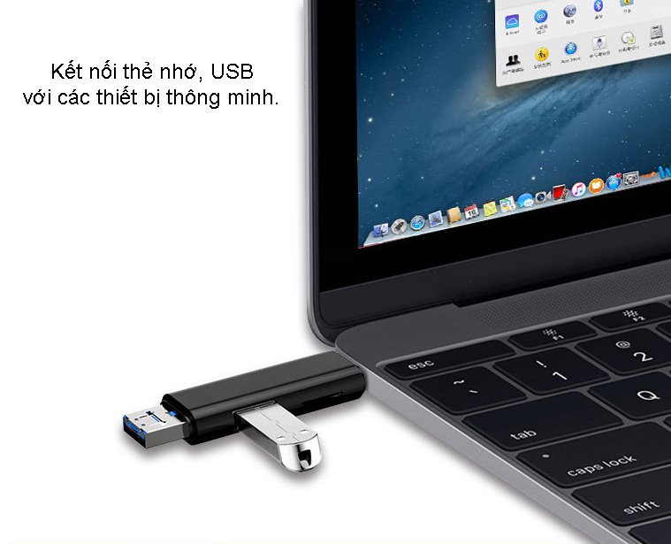Ưu điểm: - Đầu đọc thẻ đa năng năm trong một: đầu cắm Android, đầu cắm USB2.0, đầu cắm Type-C, giao diện USB2.0, khe cắm thẻ TF. - Thiết kế nhỏ gọn, tối ưu. Có vỏ bảo vệ