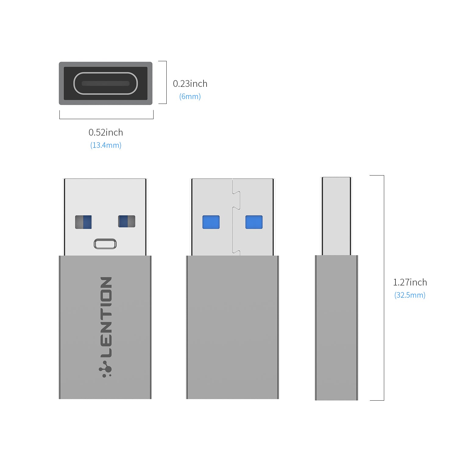 Đầu chuyển đổi USB-A sang USB-C Lention H3 - Đầu đực: USB-A - Đầu cái: USB-C Trọng lượng: 9g Kết cấu: hợp kim nhôm nguyên khối