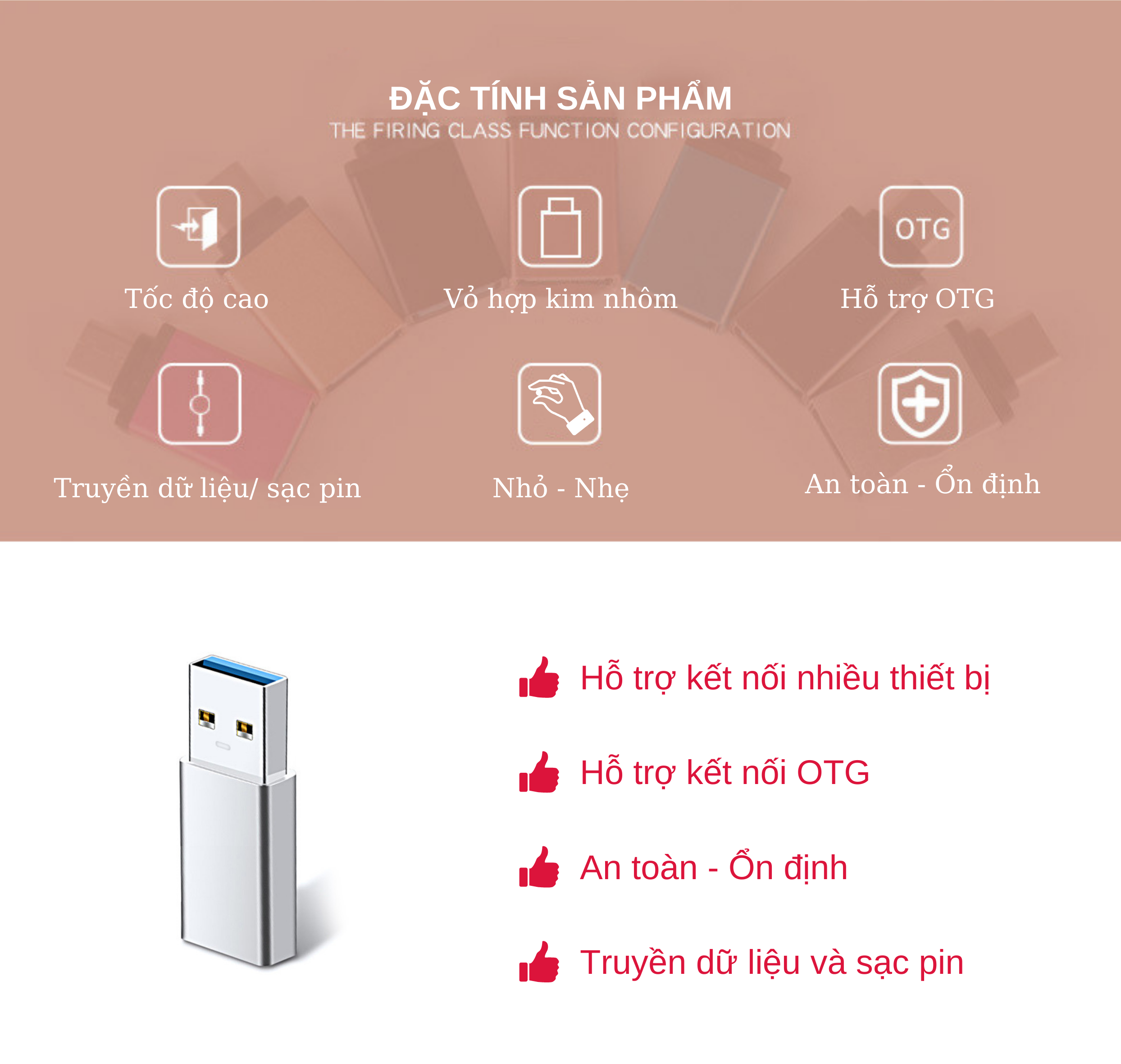 Đặc tính sản phẩm: 1. Hỗ trợ kết nối OTG nhiều thiết bị: bàn phím, ổ cứng di động, chuột, máy in, đầu đọc thẻ 2. An toàn và ổn định 3. Truyền dữ liệu