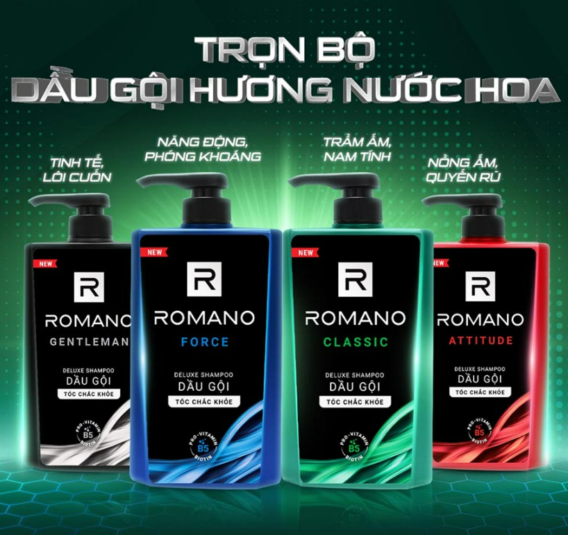 Dầu Gội Cao Cấp Cho Nam Romano Attitude có hương thơm nam tính, mạnh mẽ và cho các chàng trai cảm giác sảng khoái để năng động hơn mỗi ngày.