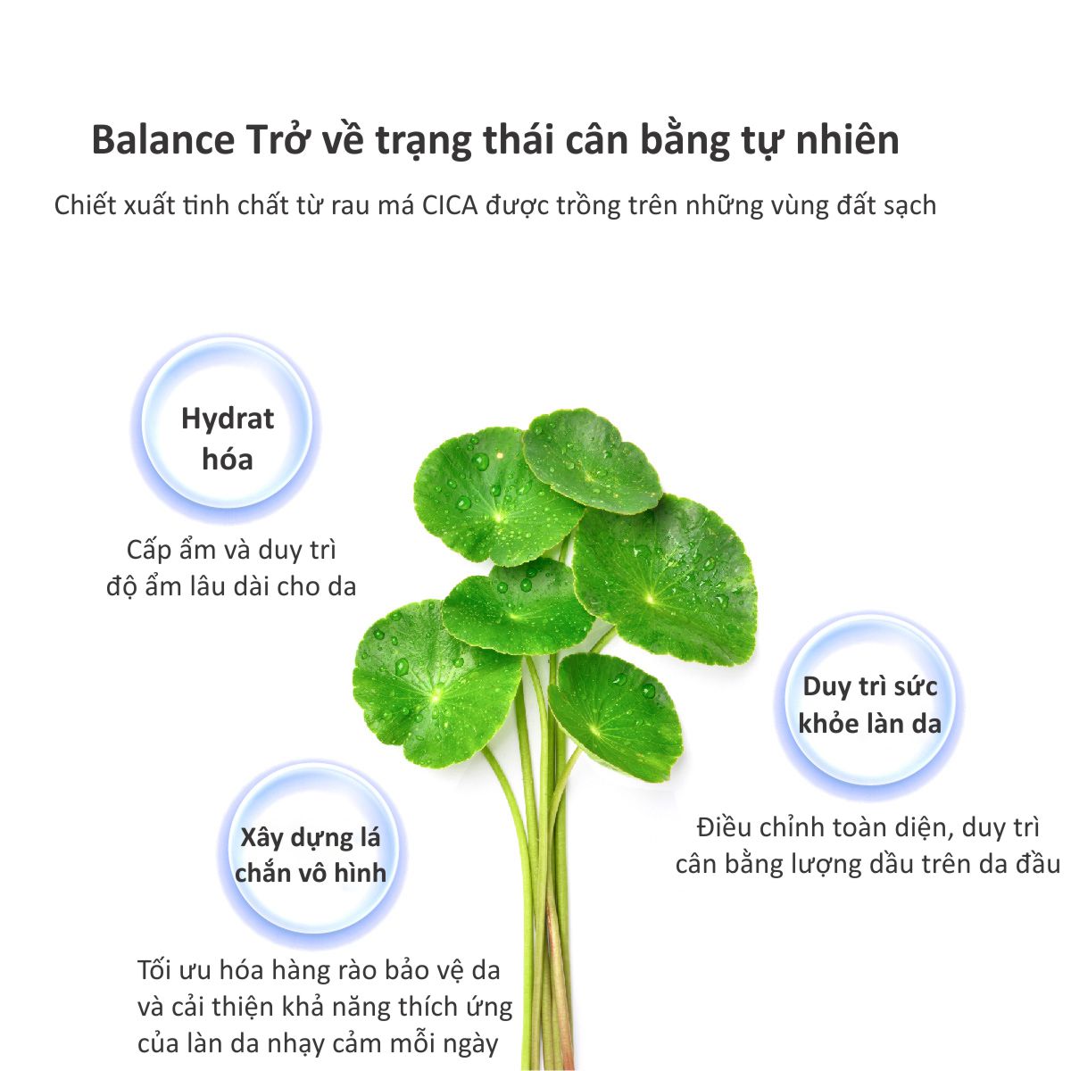 - Axit amin: Axit amin phong phú kết hợp với axit béo từ dừa nhanh chóng hấp thụ dầu thừa và bụi bẩn, đồng thời làm sạch da đầu một cách nhẹ nhàng. • Chiết xuất tinh chất từ rau má CICA được trồng trên những vùng đất sạch, an toàn tuyệt đối.