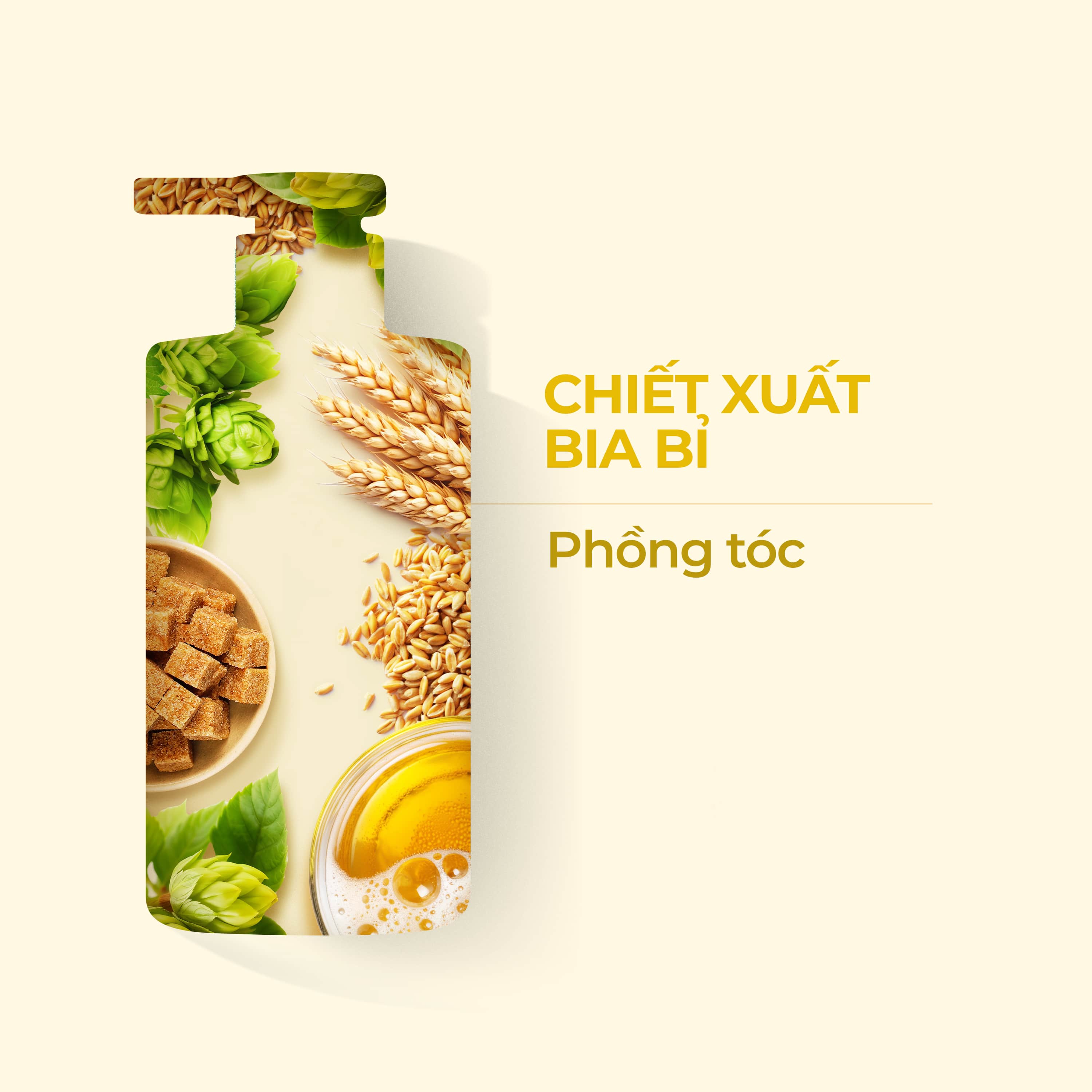 - Tạo độ phồng, cho tóc dày bồng bềnh: Công thức đặc biệt từ bia Bỉ giúp tóc dày hơn, bồng bềnh và óng ả.