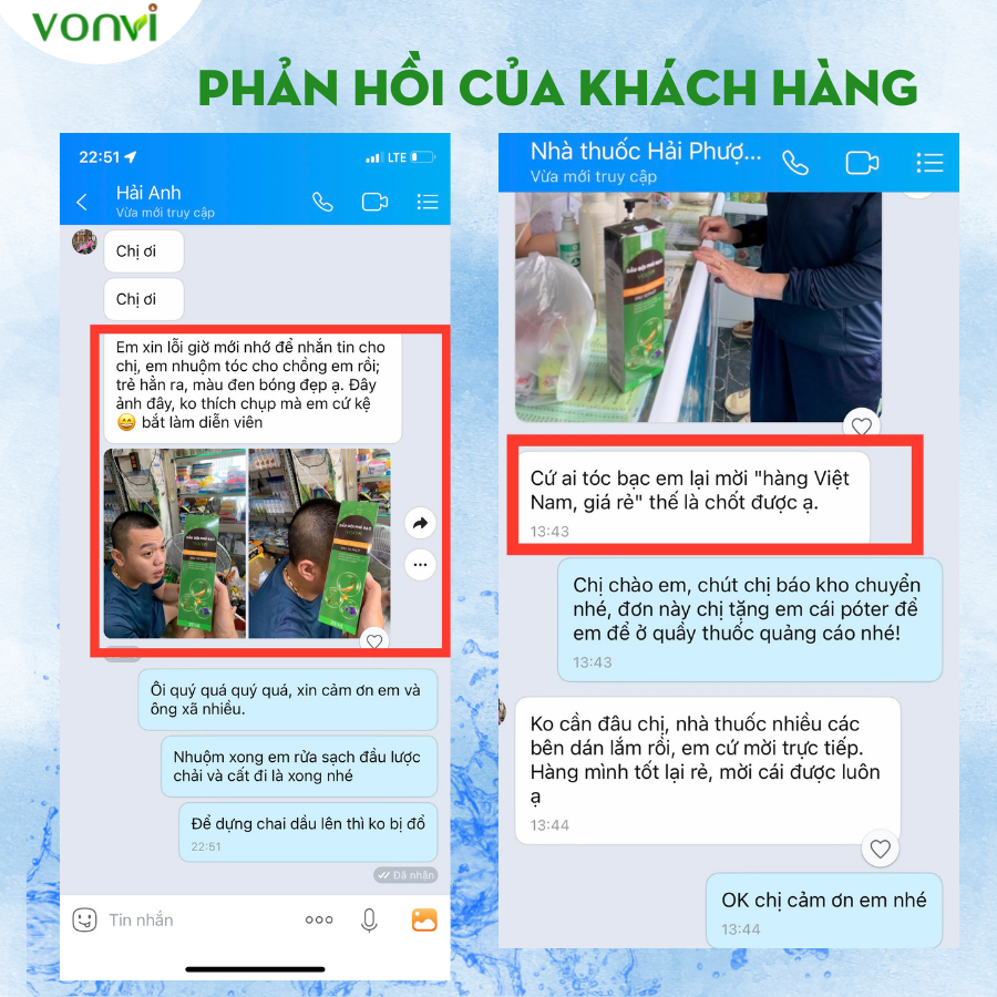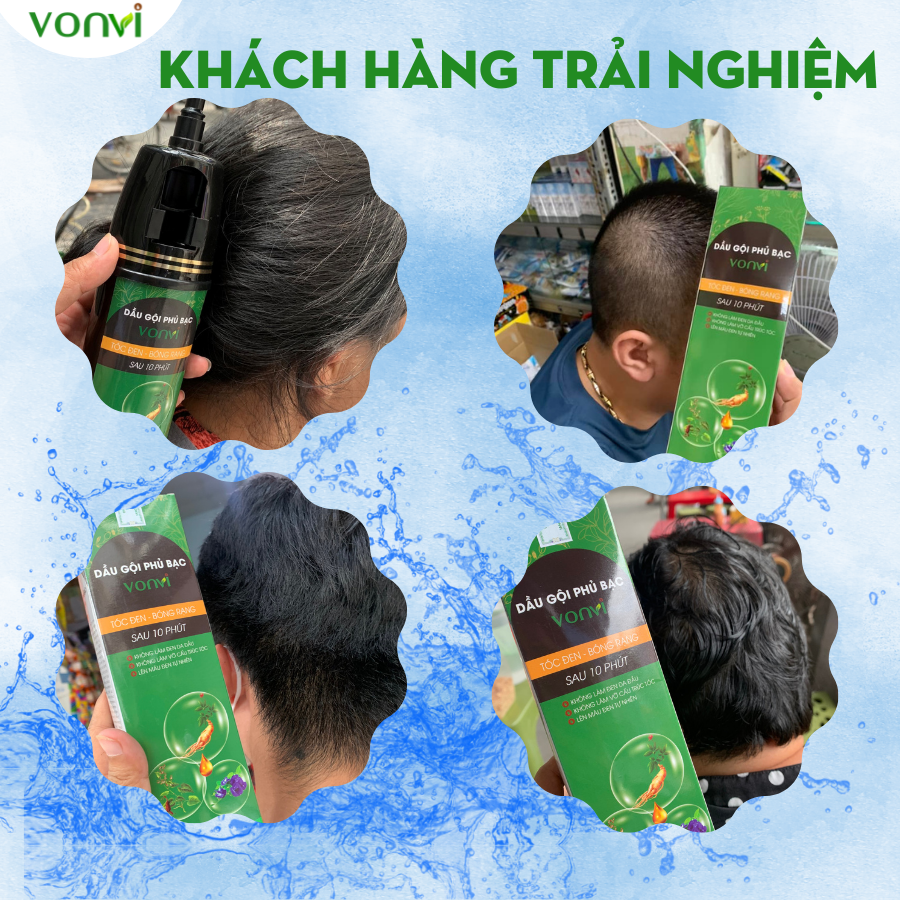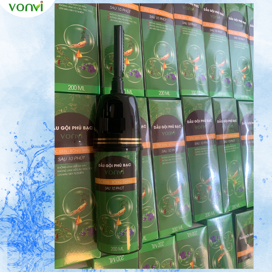 Mua tại TiktokBẠN ĐANG GẶP PHẢI CÁC VẤN ĐỀ SAU: () Mái tóc bạn bị bạc, xơ, phai màu khiến cho bạn nhìn già, xấu hơn so với hội bạn cùng tuổi. () Bận rộn cả ngày không có thời gian rỗi để đến salon làm đẹp cho mái tóc của mình. () Sợ sử dụng các loại t h u ố c nhuộm có chứa các hóa chất gây hại cho mái tóc và da đầu. () Không tự làm đen mái tóc của mình mà lại cần thêm người giúp đỡ mỗi khi gội đen tóc. () Mất tự tin vì bị tóc bạc quá nhiều khi đi họp lớp hoặc nơi đông người. ƯU ĐIỂM VƯỢT TRỘI của dầu gội phủ bạc VONVI () KHÔNG Amoniac. () KHÔNG cần pha trộn t.h.u.ố.c nhuộm. () KHÔNG lem, KHÔNG mùi hắc, KHÔNG độc hại, KHÔNG làm đen da đầu. () KHÔNG gây kích ứng da, KHÔNG làm tổn thương cho tóc và da đầu. () KHÔNG làm thay đổi cấu trúc của tóc, KHÔNG gây xót da đầu () KHÔNG cần dùng hóa chất làm hư hại cho tóc. () Sử dụng DỄ DÀNG chỉ cần ẤN và CHẢI. () KHÔNG cần đến Salon tóc. () Lên màu ĐEN TỰ NHIÊN bóng rạng sau 10 phút. () An toàn cho mọi lứa tuổi. THÀNH PHẦN của dầu gội phủ bạc VONVI: () Dầu gội phủ bạc VONVI với thiết kế lược chải thông minh thế hệ mới 1 nút ấn sẽ đem lại cho người dùng sự tiện lợi vô cùng, thao tác nhanh, dễ sử dụng giúp bạn lên màu đều và đẹp chỉ trong vòng 10 phút. () Dầu gội phủ bạc nhà VON #vonvi được chiết xuất từ các loại thảo dược thiên nhiên chính có tác dụng tạo màu tóc và dưỡng tóc như: Hà Thủ Ô, Nhân Sâm, Nấm linh chi, Cỏ mực, Nha đam, Hoa đậu biếc và dầu bơ…. HƯỚNG DẪN SỬ DỤNG dầu gội phủ bạc nhà VONVI () Bước 1: Bạn nên để tóc sạch và khô và không nên dùng dưỡng tóc, keo, sáp trước khi gội nhuộm đen tóc. () Bước 2: Đưa đầu lược lắp vào phần rãnh trên đỉnh của chai dầu gội phủ bạc, sau đó lắc đều nhẹ bình để nguyên liệu gội đen trong bình được trộn đều (khoảng 3-4 lần). () Bước 3: Tháo chốt phía sau, sau đó Ấn nhẹ nút ở phía sau để lấy lượng dầu gội vừa đủ ở đầu lược chải. Sau đó đưa lược chải chậm và đều lên tóc, chải đi chải lại sau đó để khoảng 10 phút thì gội lại đầu và lau khô. Lúc này chúng ta sẽ có 1 mái tóc đen tự nhiên bóng rạng. () Bước 4: Rút đầu lược từ bình ra, rửa sạch lược chải và cất đi cho lần sử dụng tiếp theo. THÔNG TIN KHÁC: () Thương hiệu: VONVI () Xuất xứ: Việt Nam. () Màu: ĐEN TỰ NHIÊN () Hạn sử dụng: 03 năm từ ngày sản xuất. () Nếu dầu gội dính ra tay, chán thì lấy khăn ướt lau ngay đi. () Bảo quản sản phẩm ở nơi khô ráo, thoáng mát, tránh ánh nắng trực tiếp. () Dầu gội 200 ml sử dụng được từ 5-6 lần với tóc ngắn và 3-4 lần với tóc dài. Khuyến nghị nên gội 2-3 tuần/ 1 lần để giữ được mái tóc đen mượt.