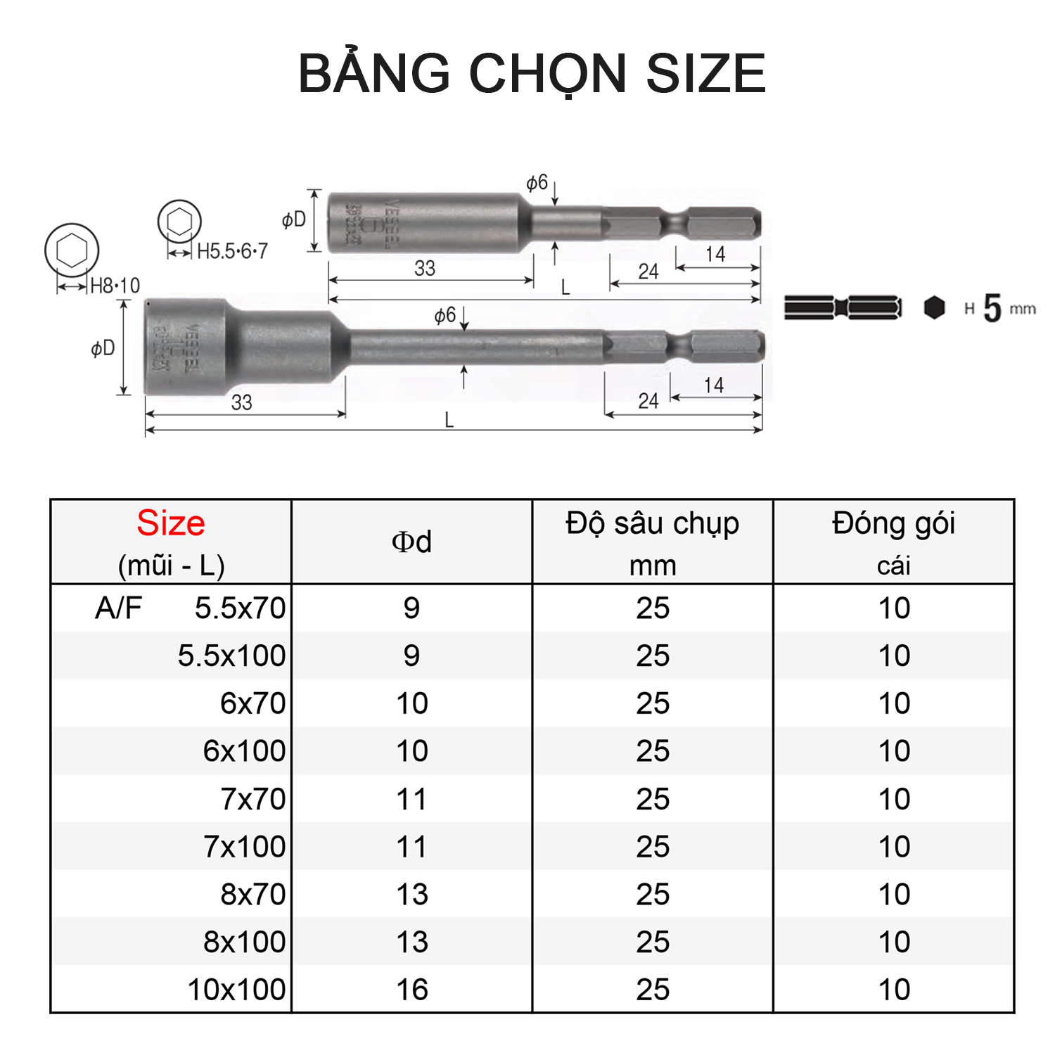 Mua tại Tiktok• Dùng chung cho tất cả các ngành sản xuất CN lắp ráp ô tô-xe máy, điện tử, điện lạnh và các ngành phụ trợ. • Đầu mũi vặn bulong lục giác được sản xuất với độ chính xác cao, dễ dàng sử dụng & có độ bền cao.