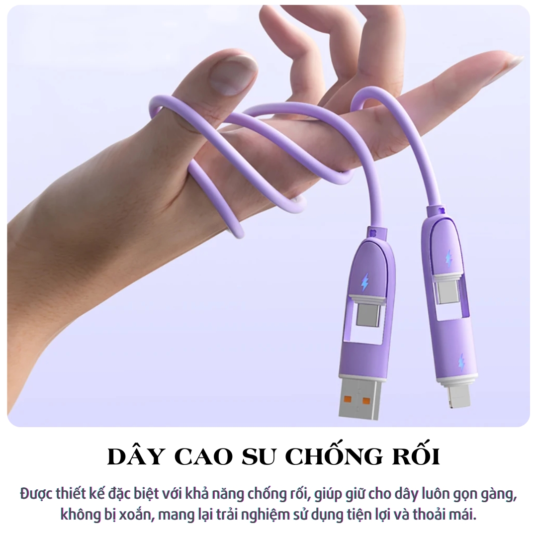 Dây Sạc Nhanh 100W 4-in-1 HOTCASE SiliFast: Giải Pháp Sạc Hiệu Quả và Đa Năng