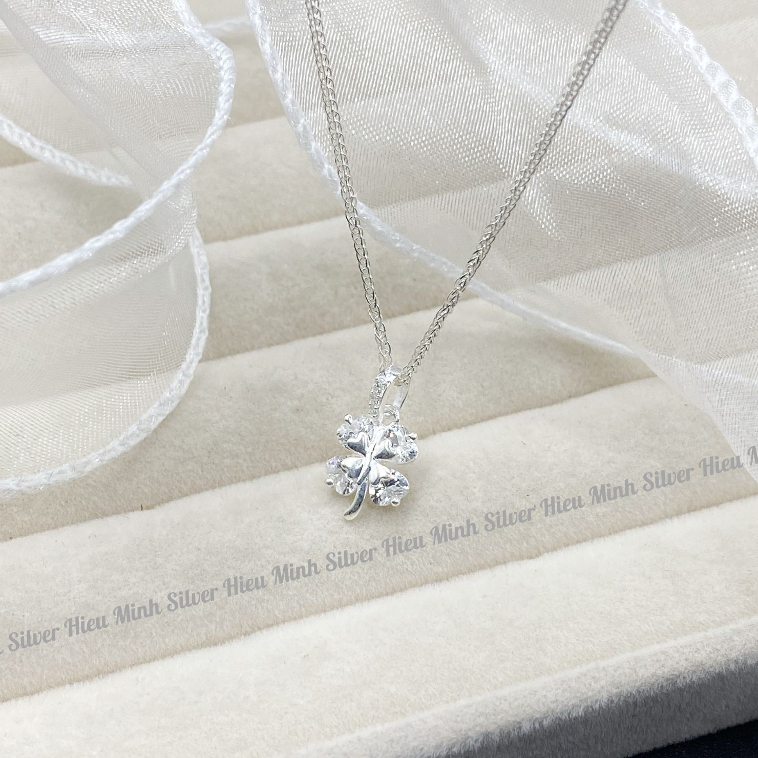 ✨Dây Chuyền Bạc 925 Cỏ 4 Lá Đính Đá Bạc Hiểu Minh DMD543