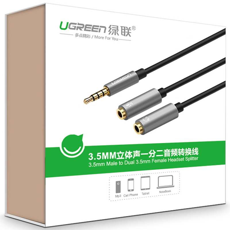 ✨Dây chuyển đổi 3.5mm đực sang hai đầu 3.5mm cái (1 đầu hỗ trợ Mic, 1 đầu hỗ trợ tai nghe) UGREEN AV141 - Hàng chính hãng