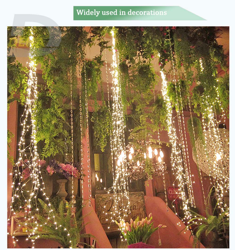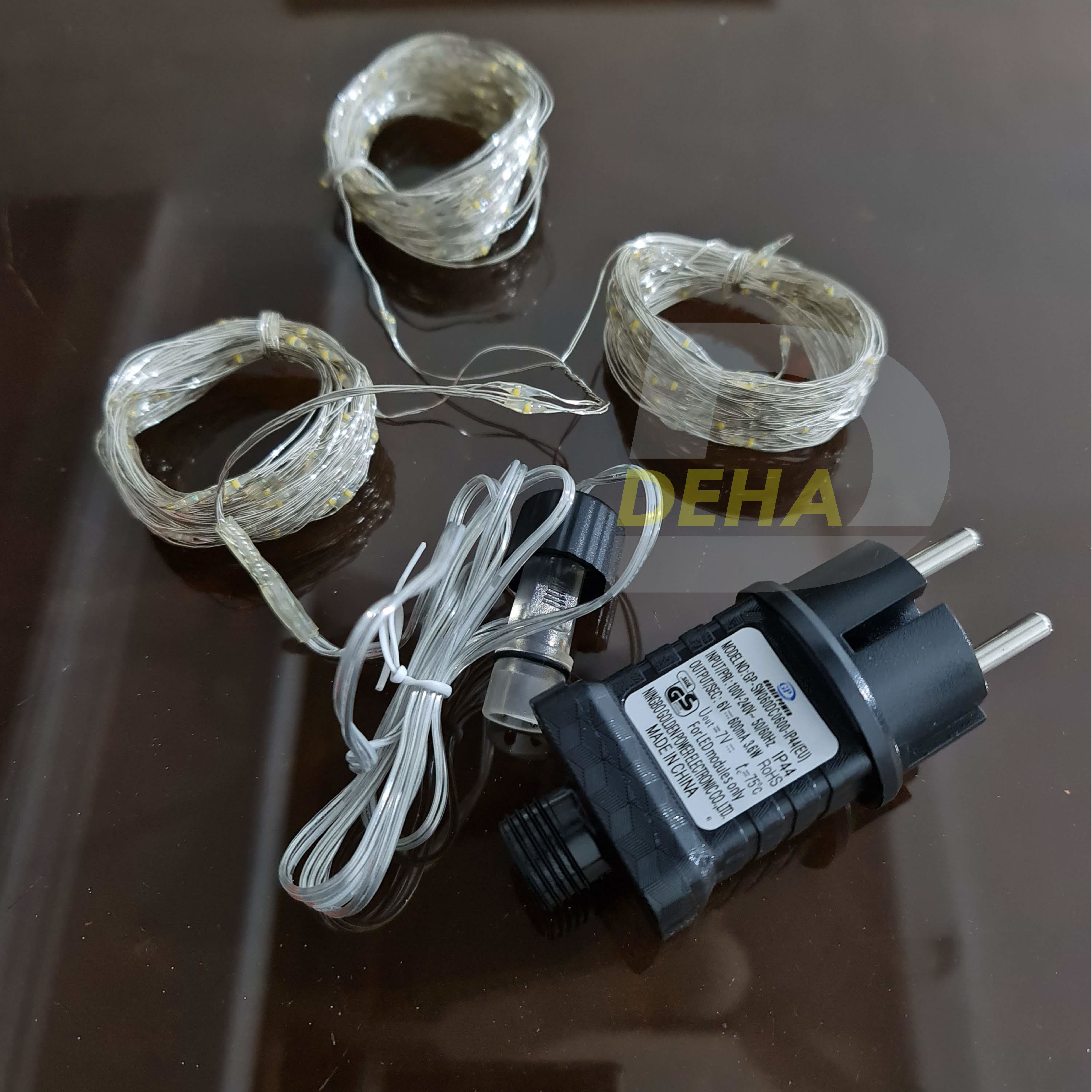 Màu sắc: Vàng nắng/ Nhiều màu Chia nhánh, mỗi nhánh dài 10 mét Tùy chọn 3 nhánh hoặc 5 nhánh (30/50 mét) Dùng điện lưới 220V Không có chế độ nháy. Đèn chipsbing nhỏ sáng . Dây đèn bằng đồng được phủ màu bạc sliver trang nhã.