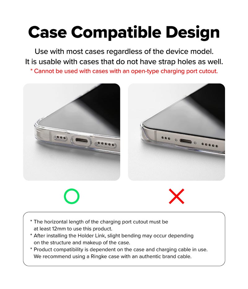 - Sau khi lắp holder link, tuỳ thuộc vào cấu trúc và chất liệu của ốp lưng mà có thể dẫn đến ốp giãn nhẹ.