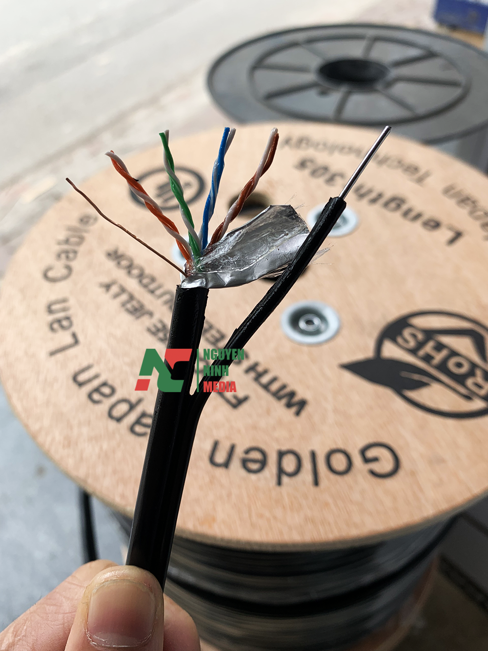 ✨Dây Mạng Ngoài Trời 8 Lõi Golden Japan Cat5e Có Sợi Thép Chịu Lực, Bọc Bạc, Phủ Dầu Chống Ẩm - Hàng Chính Hãng