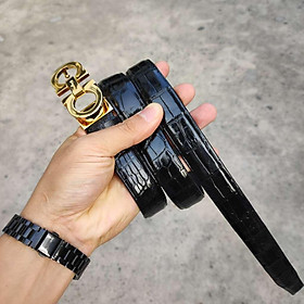 Thắt lưng/ Dây nịt da bụng cá sấu thật phối khóa trơn thép không gỉ hình cá sấu bản 3.5cm