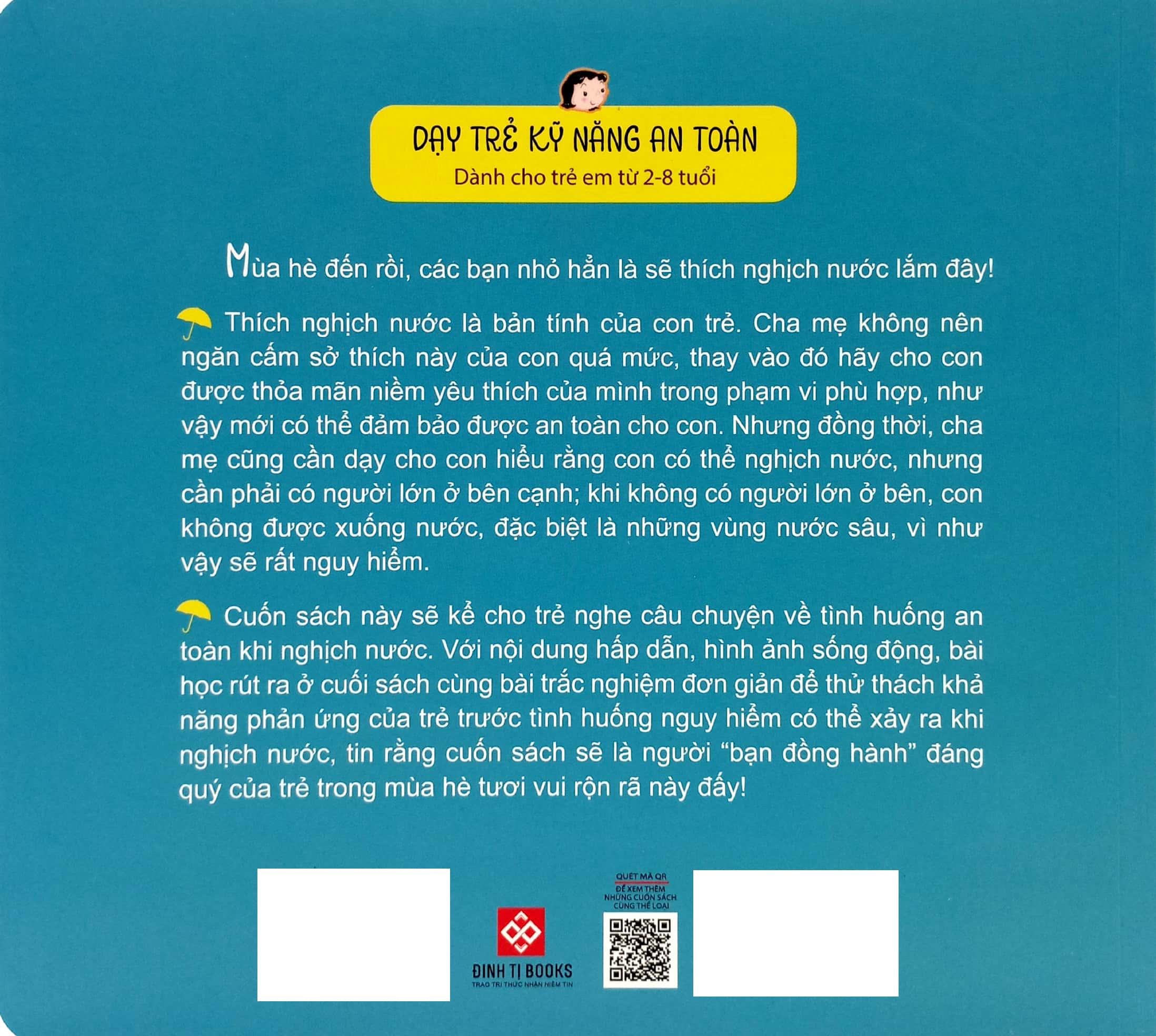 Bộ sách Dạy trẻ kỹ năng an toàn này sẽ mang đến cho trẻ 7 câu chuyện về các tình huống an toàn trong cuộc sống thường ngày. Với nội dung hấp dẫn, hình ảnh sống động và những bài học rút ra ở cuối sách cùng các bài trắc nghiệm đơn giản để thử thách khả năng phản ứng của trẻ trước mỗi tình huống nguy hiểm có thể xảy ra, tin rằng bộ sách sẽ là người “bạn đồng hành” đáng quý trong quá trình trưởng thành của trẻ