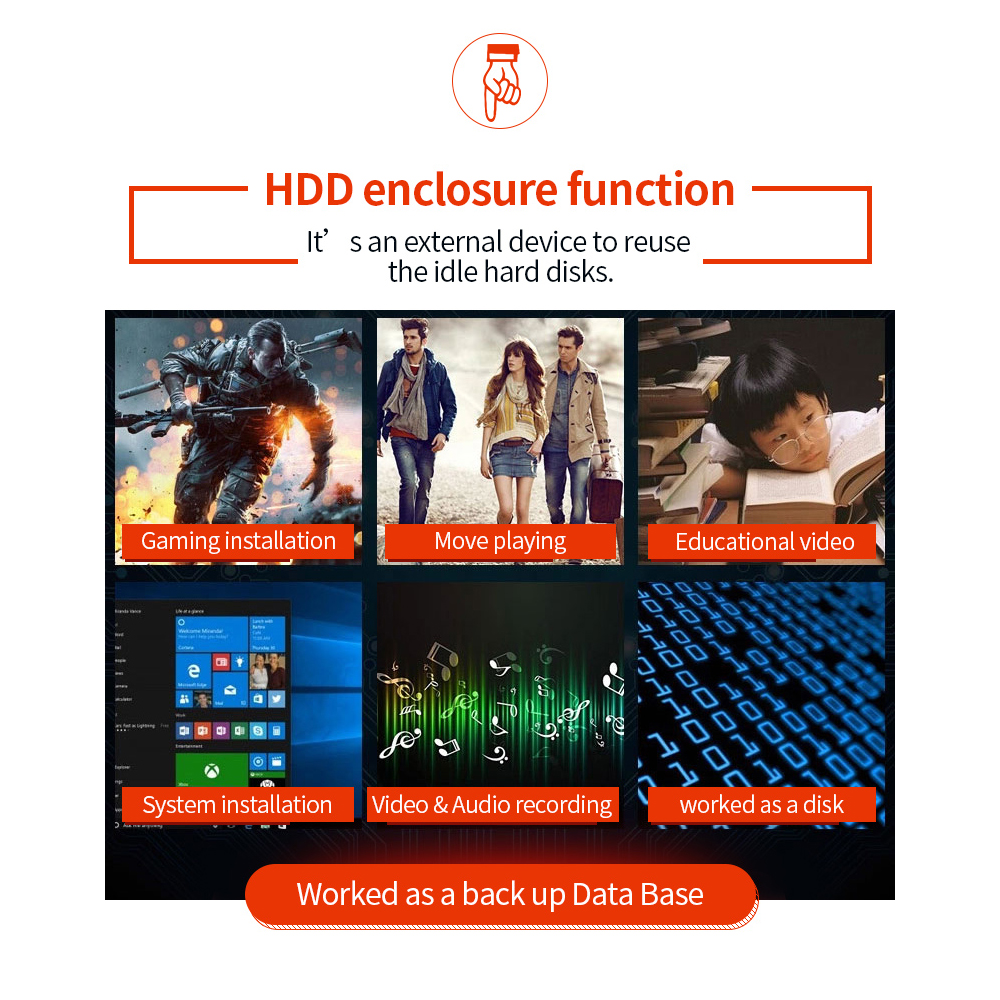 This is a 2.5/3.5 inch SATA HDD/SSD, USB3.0 fast transfer speed up to 5 Gbps and easy to use. It protects your hard drive and valuable data applications. Support systems including Windows 2003/XP/Vista/Win7/Win8/Win10/ MAC10.3 and